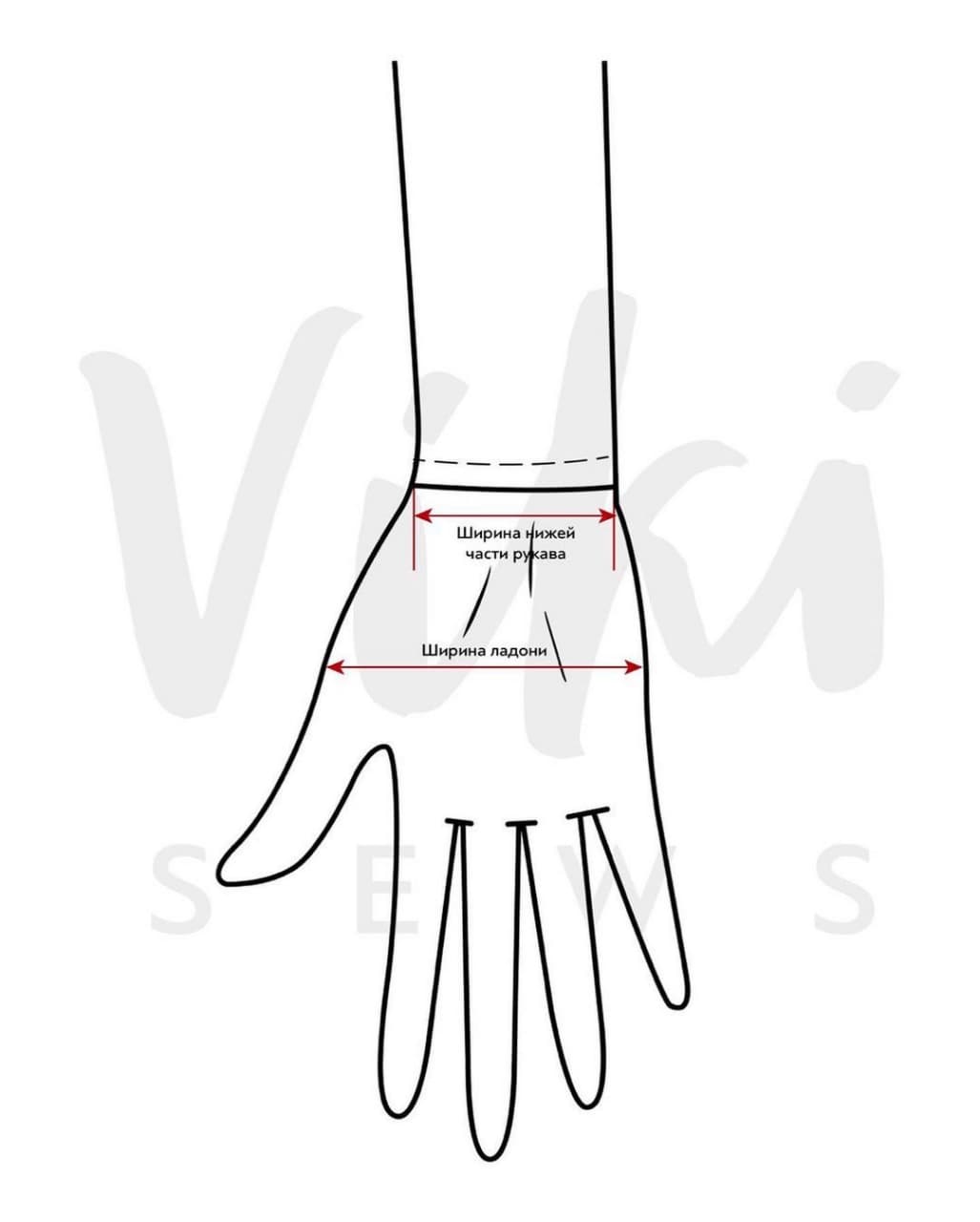 3. Ширина рукава в нижней части равна обхвату запястья (Озап) плюс прибавка на свободу облегания (Позап). Позап зависит от растяжимости материала и ширины ладони, т.е. ширина рукава внизу должна быть такой, чтобы ладонь свободно и без усилий проходила в него. Прибавка может быть нулевой, может быть минусовой, если малорастяжимый материал, 1-2 см и т.д.