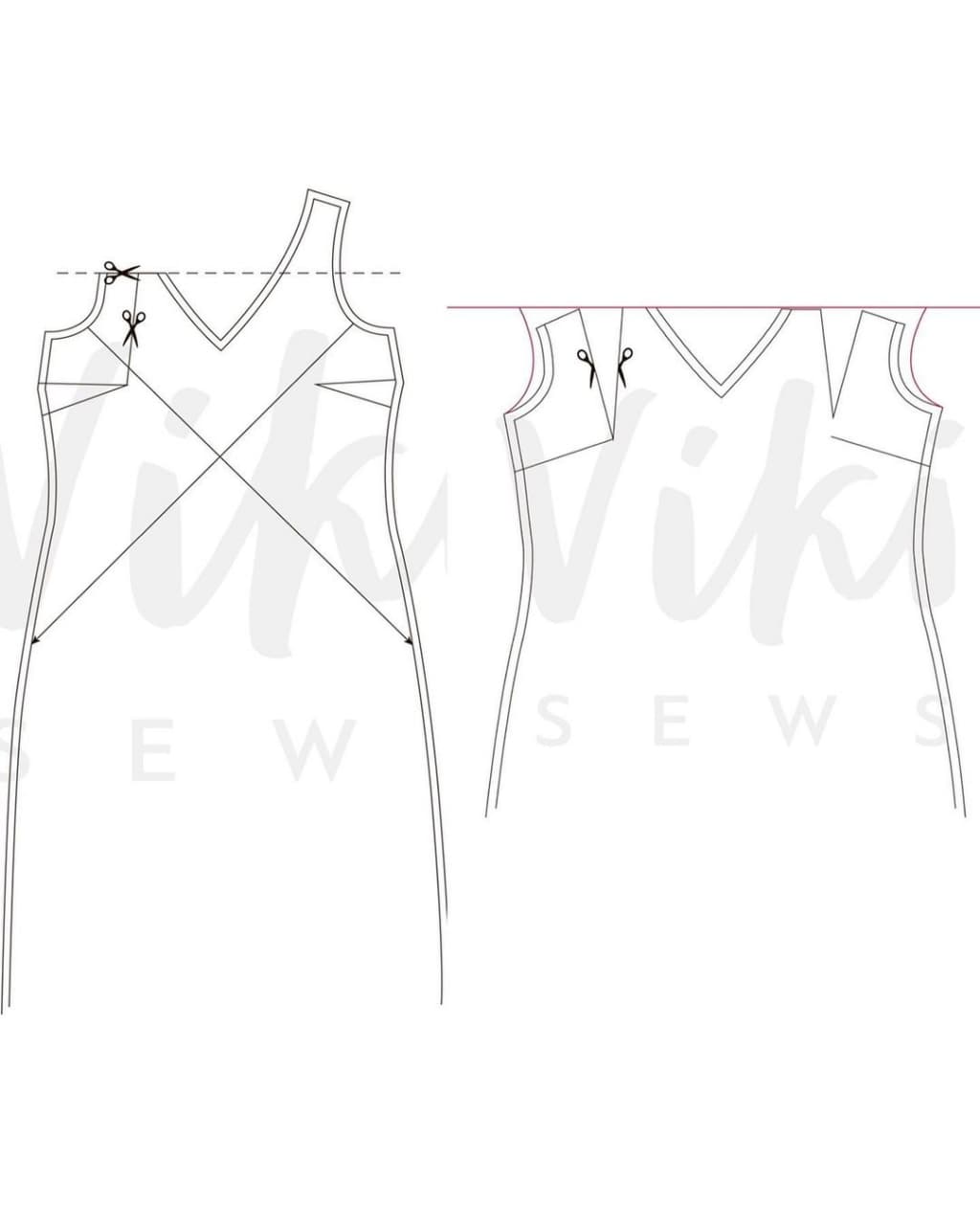 Возьмем за основу выкройку #vikisews_голди (крой по косой).