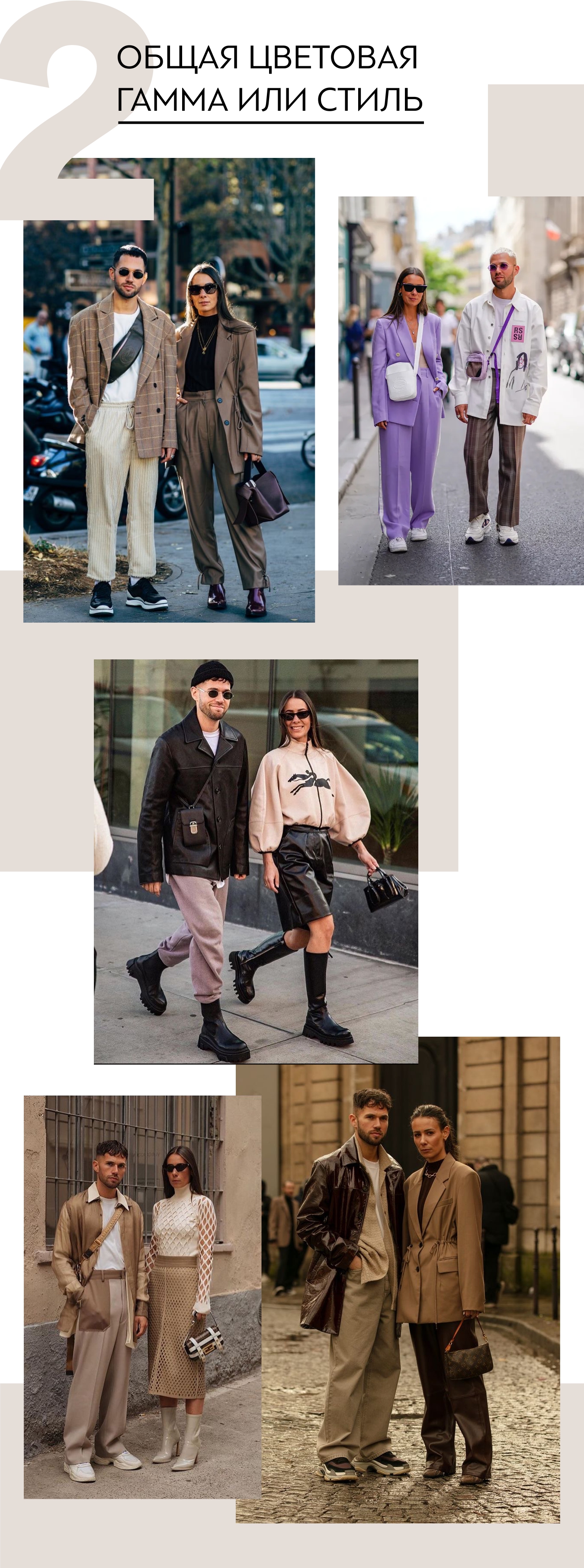Выбирайте общую цветовую гамму или стиль. Парные вещи могут быть, но их наличие должно быть понятно и приемлемо для обоих. Например, вы оба — фэшионисты, вам нравится выделяться из толпы и ходить, например, в сандалях с носками.