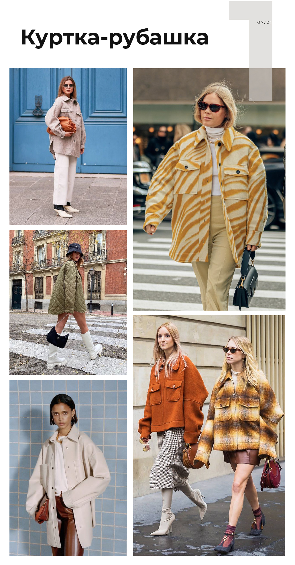 Куртки-рубашки были хитом прошлого сезона — сейчас ими уже никого не удивишь. Если такая модель вписывается в ваш стиль, смело оставляйте ее в гардеробе. Это универсальная вещь, которая пригодится во множестве образов.