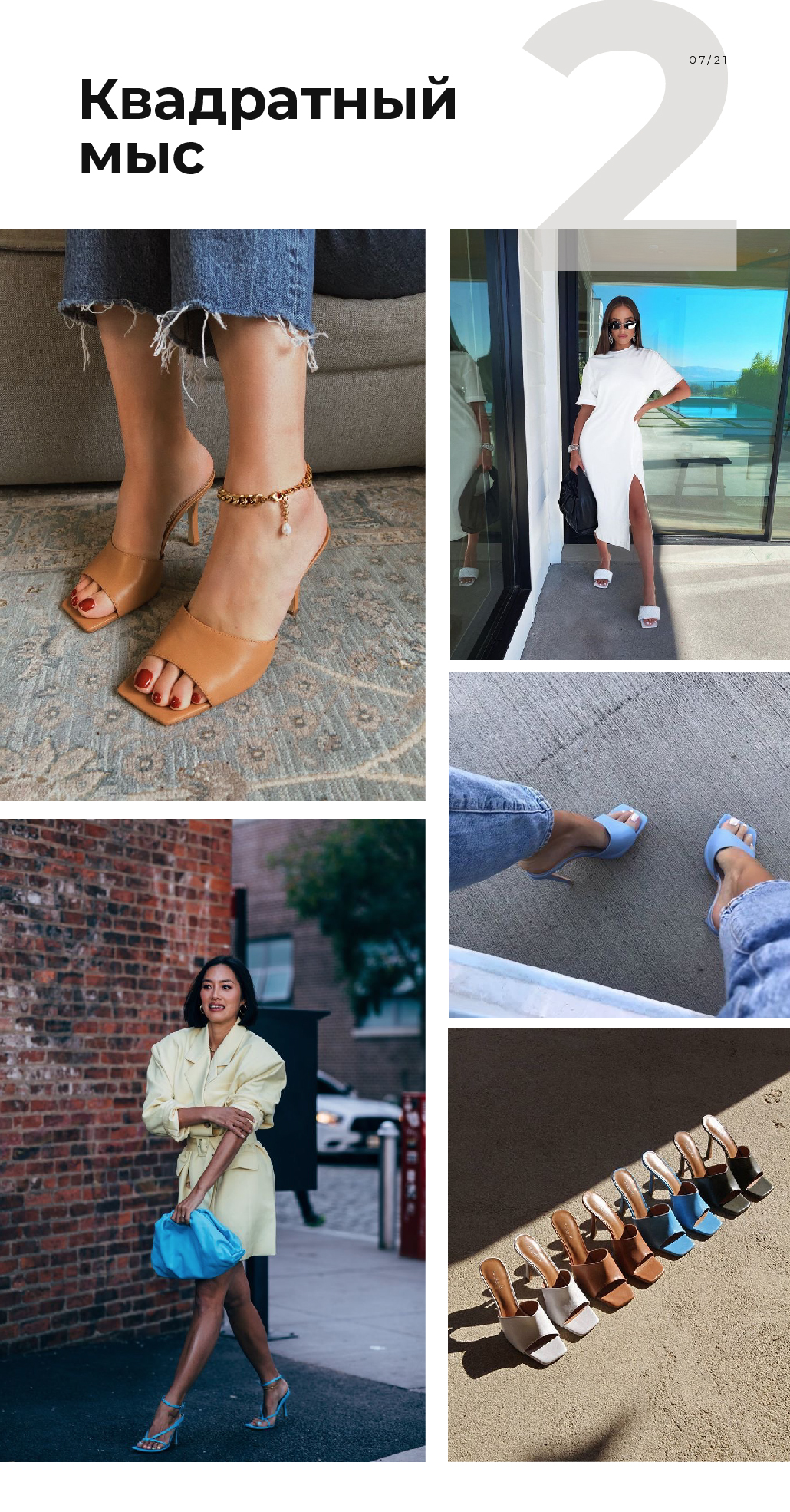 Возвращение квадратного мыса в моду поначалу многих шокировало, сегодня же это просто вариант обуви среди прочего разнообразия, к которому уже все привыкли. Такая форма носка ни к чему не обязывает — носите такую обувь с любыми образами.
