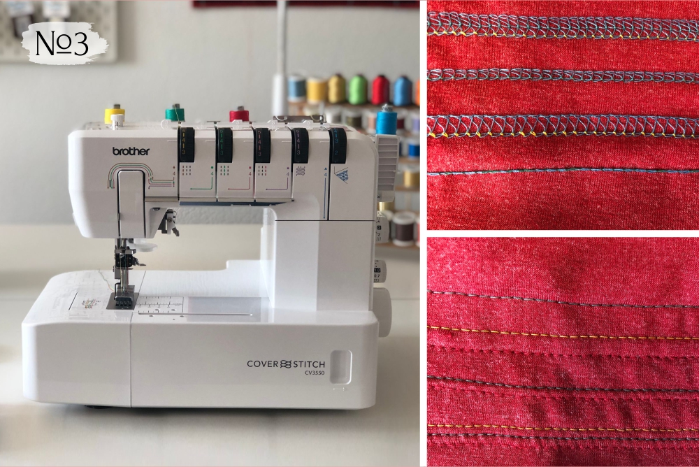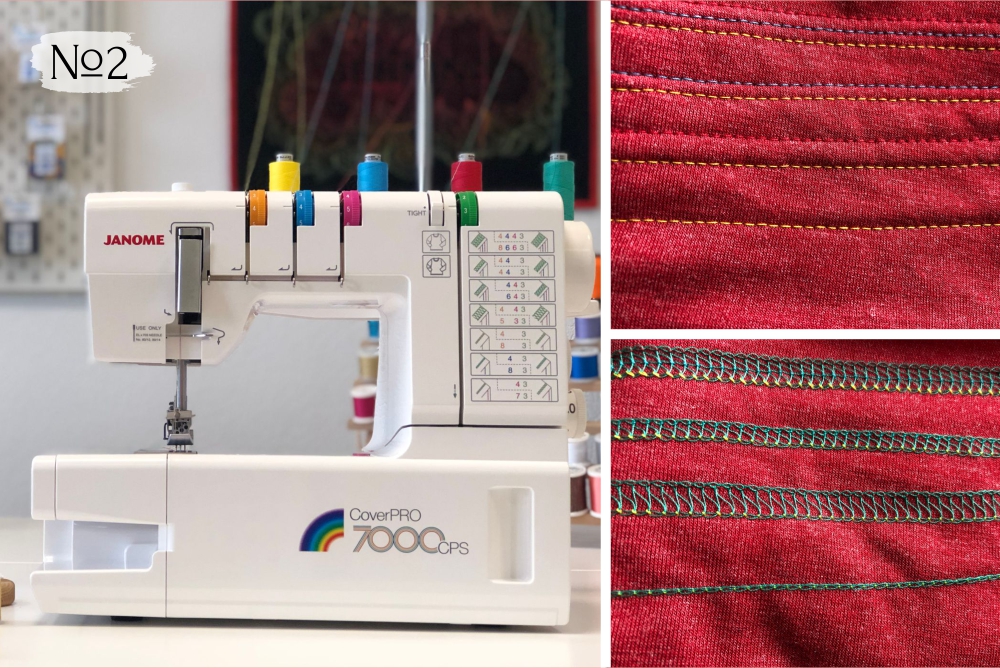 Как и Bernette b42, шила «из коробки» на стандартных настройках. Со всеми материалами справилась хорошо. Видимо, инженеры Джаноме учли многочисленные замечания пользователей к машине предыдущего поколения — Janome Cover PRO 2, которая «славится» пропусками не только на утолщениях, но и на материалах средней толщины. Она дороже, чем Bernette b42 (39 900 рублей), но у нее есть опция быстрого переключения натяжения нити петлителя с тонких материалов на толстые. Эта функция является собственной разработкой Janome и называется TLC.
