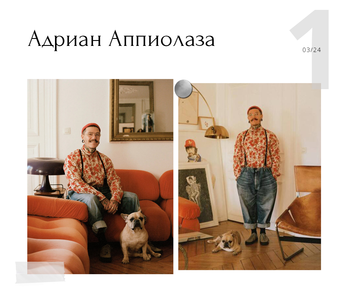 У Аппиолаза есть интересное хобби. Он коллекционирует образы великих дизайнеров, которые, по его мнению, значительно повлияли на моду. В коллекции ни много ни мало сотни архивных вещей от Maison Margiela, Vivienne Westwood, Comme Des Garçons, Yohji Yamamoto. В ней есть и работы самого Франко Москино.