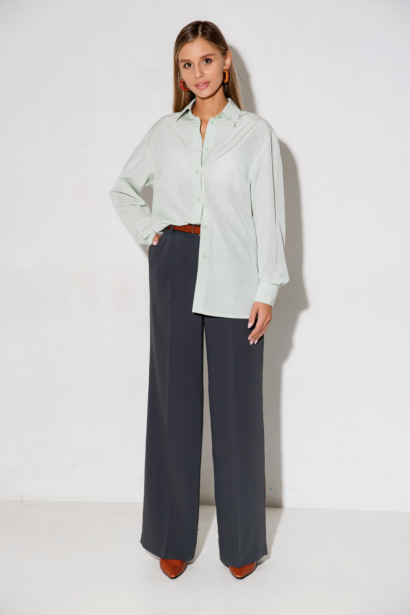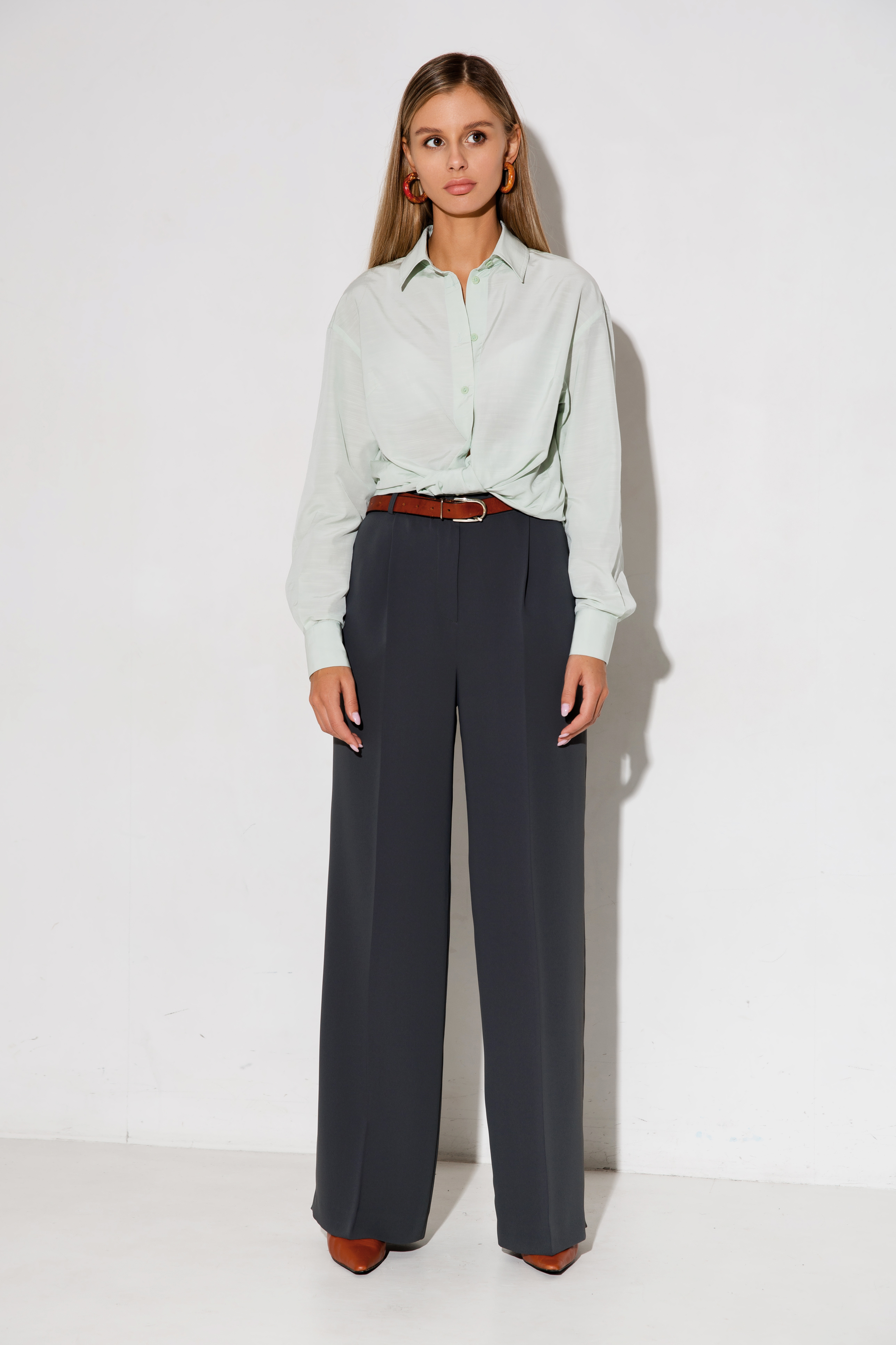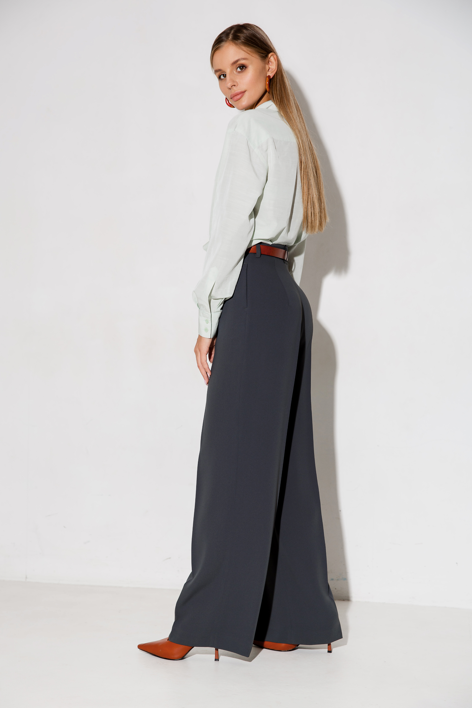 1. Брюки Джес-брюки прямого силуэта, объемные, имитация застежки-гульфик на молнию, в боковых швах карманы, притачной пояс.