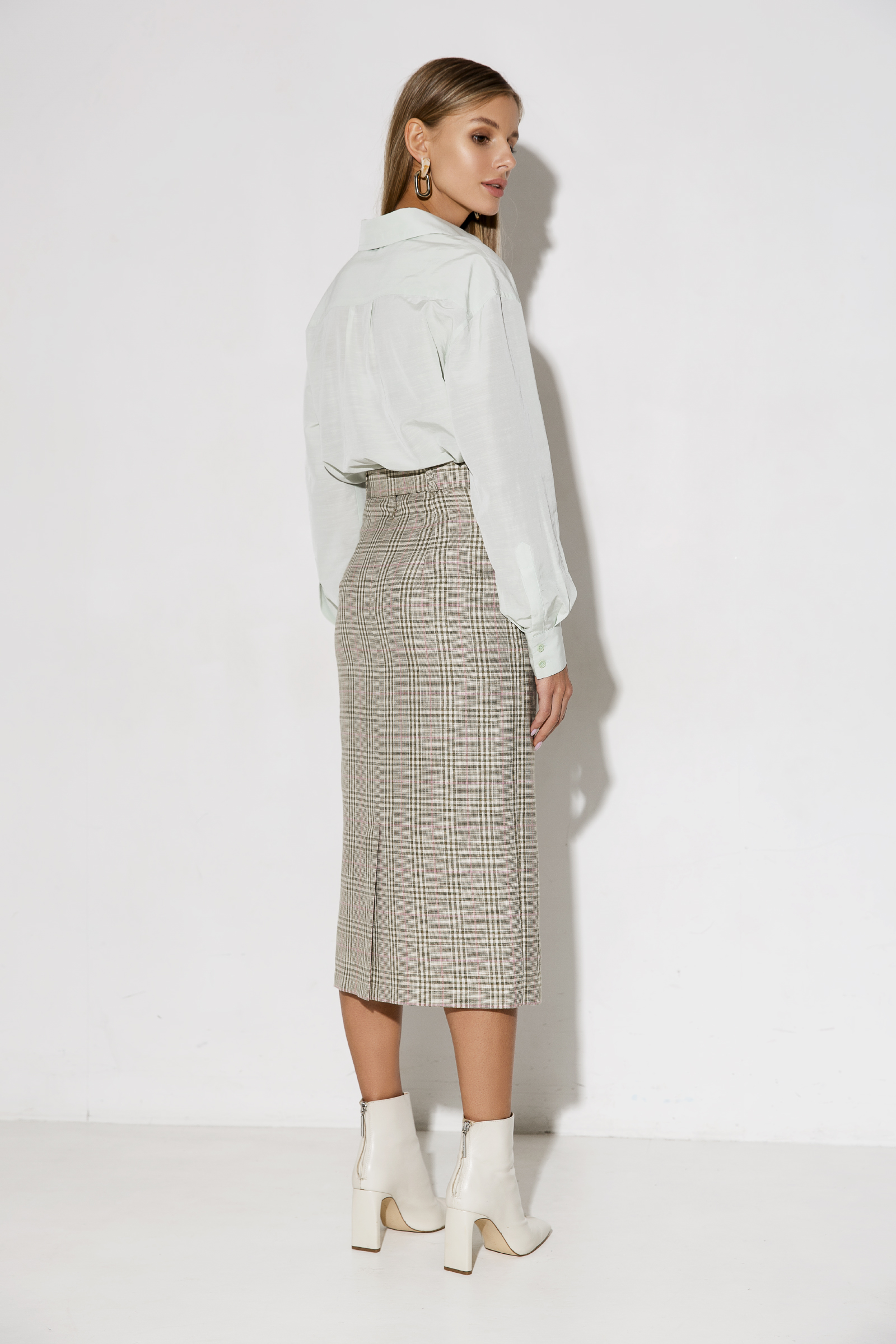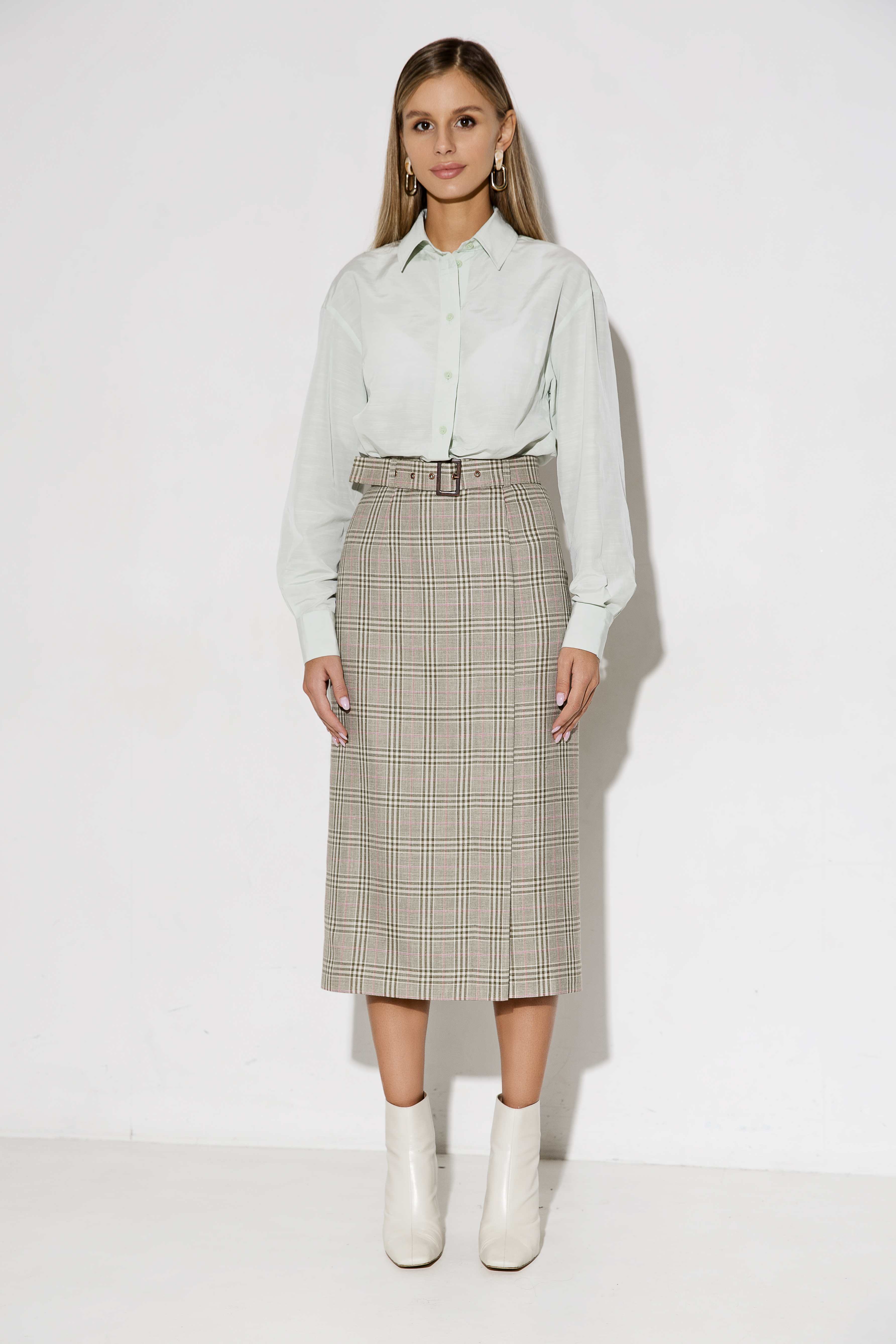 3. Юбка Нина- юбка прямого силуэта, с отлетной деталью, обработанной подкладкой, на переднем полотнище, длина ниже колена. На притачном и съемном поясе. В среднем шве заднего полотнища шлица и застежка на молнию. Шлевки.