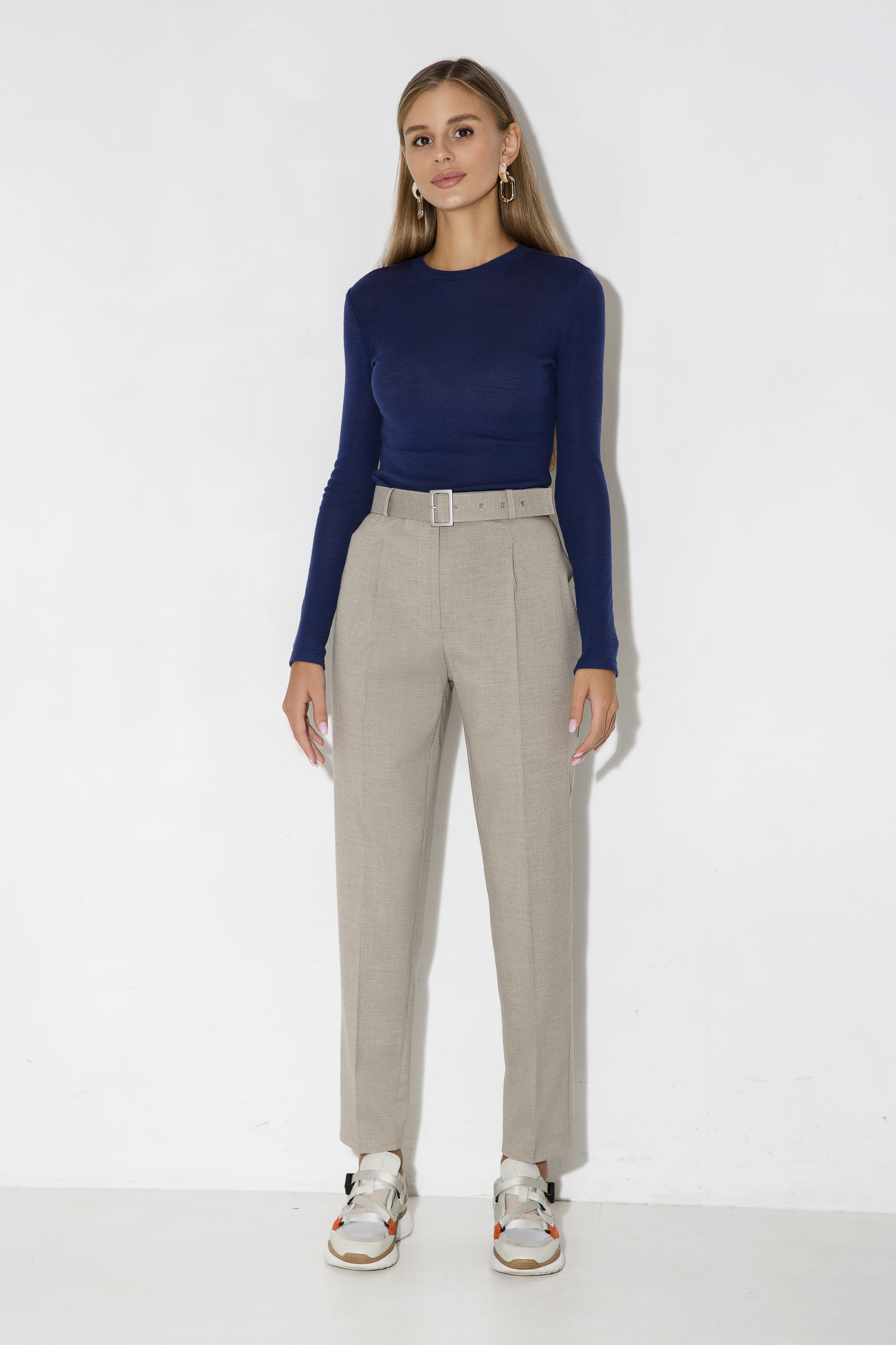 2. Брюки Астен- Брюки-«морковки», зауженные книзу и слегка укороченные, длина до щиколотки, с заутюженными стрелками. Имитация застежки-гульфик на молнию, на притачном и съемном поясе с пряжкой, шлевки.
