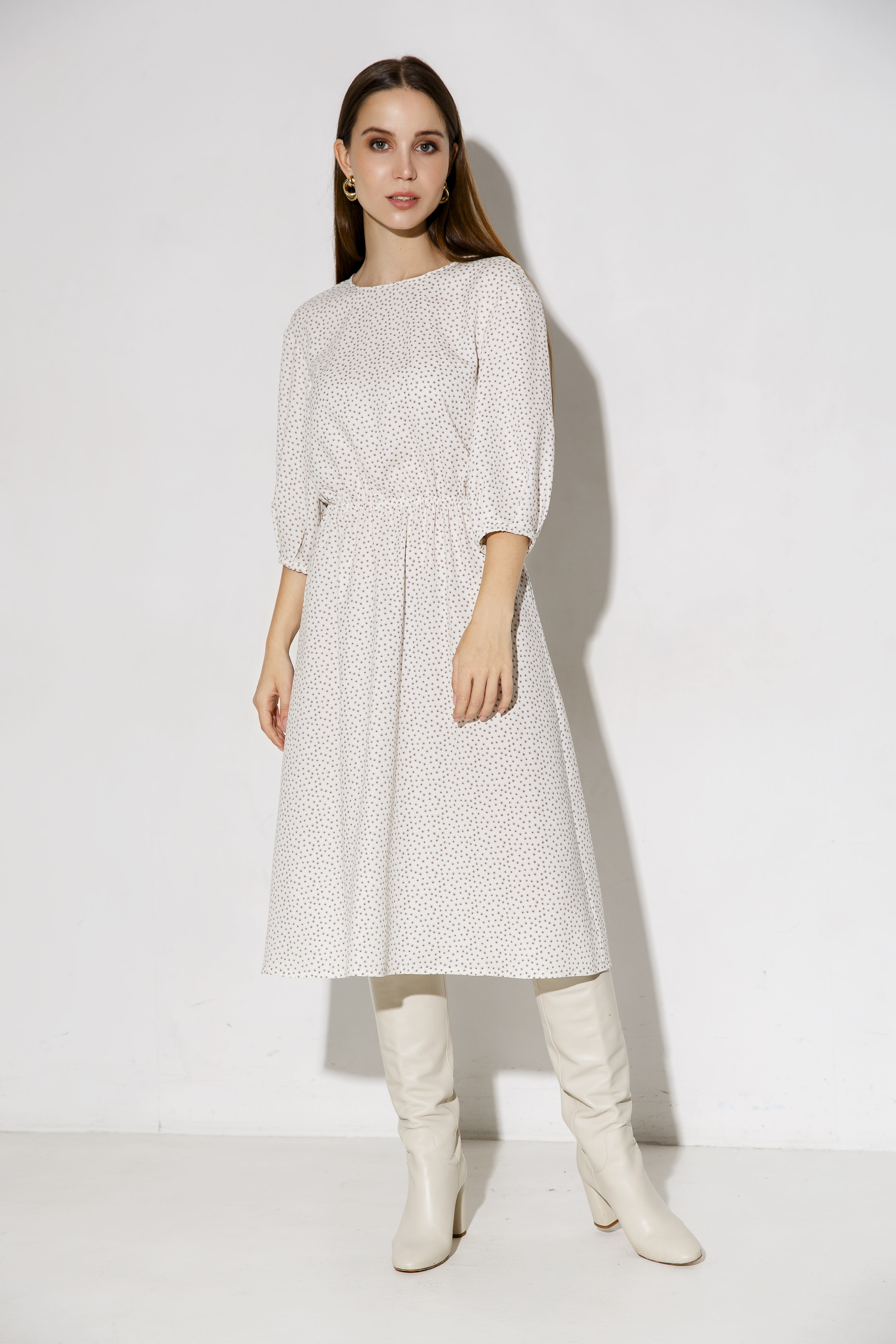 3. Платье Ибби- платье прямого силуэта, двубортное, приспущенное плечо, плечевая вытачка, центральная застежка на пришивные кнопки, рубашечный рукав длиной ¾, по низу рукава отворот, нагрудная вытачка спрятана под лацкан. Воротник пиджачного типа. В среднем шве спинки шлица. Шлевки, съемный пояс.