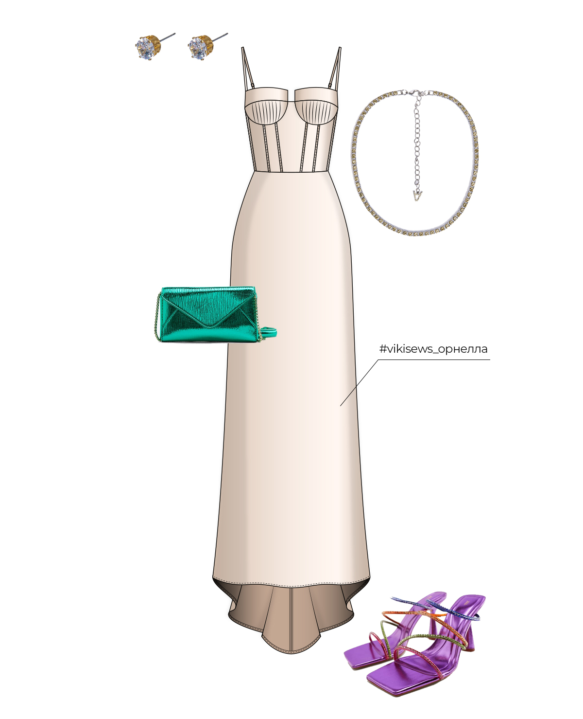 Орнелла — идеальная выкройка свадебного платья. Очень женственное и трендовое — асимметричный подол, шлейф, корсетный верх. Необычные чашечки напоминают о Венере с картины Боттичелли, где она выходит из морских волн. Ассоциация с чистотой и безупречной красотой.