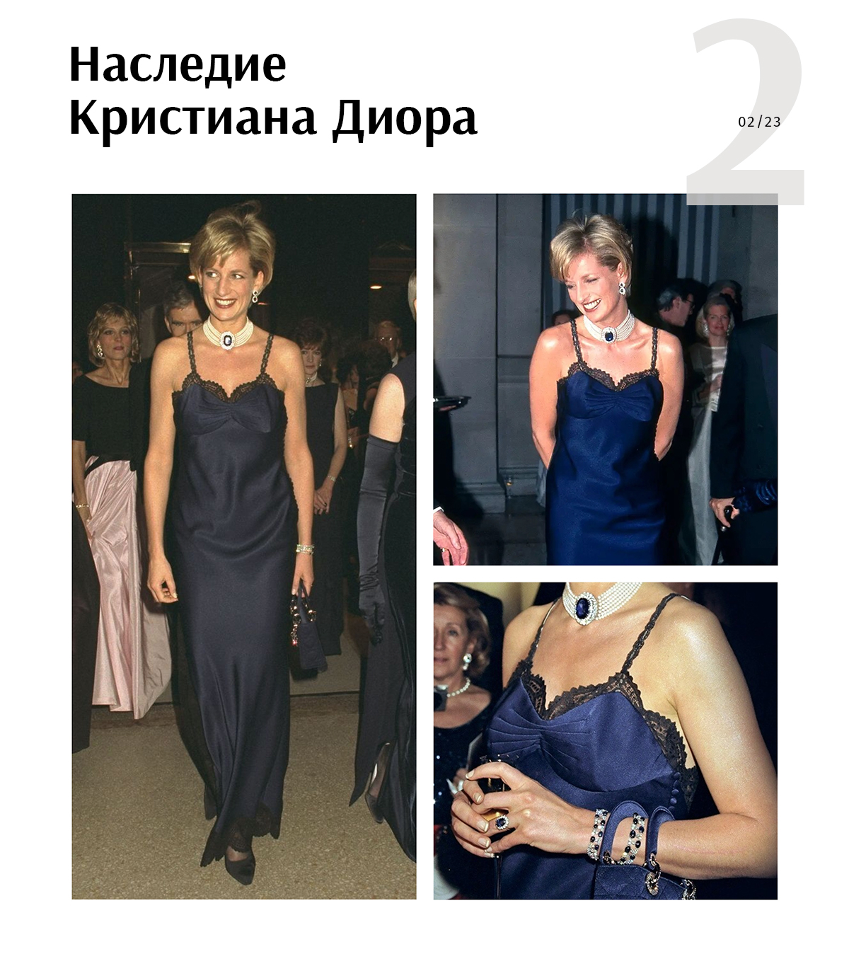 В 1996 году темой стало наследие Кристиана Диора. Самым ярким выходом было появление принцессы Дианы в платье-комбинации от Гальяно, который тогда отвечал за креатив Dior. Он запомнился еще и потому, что оказался последним громким выходом в свет леди Ди. Вскоре она погибла.
