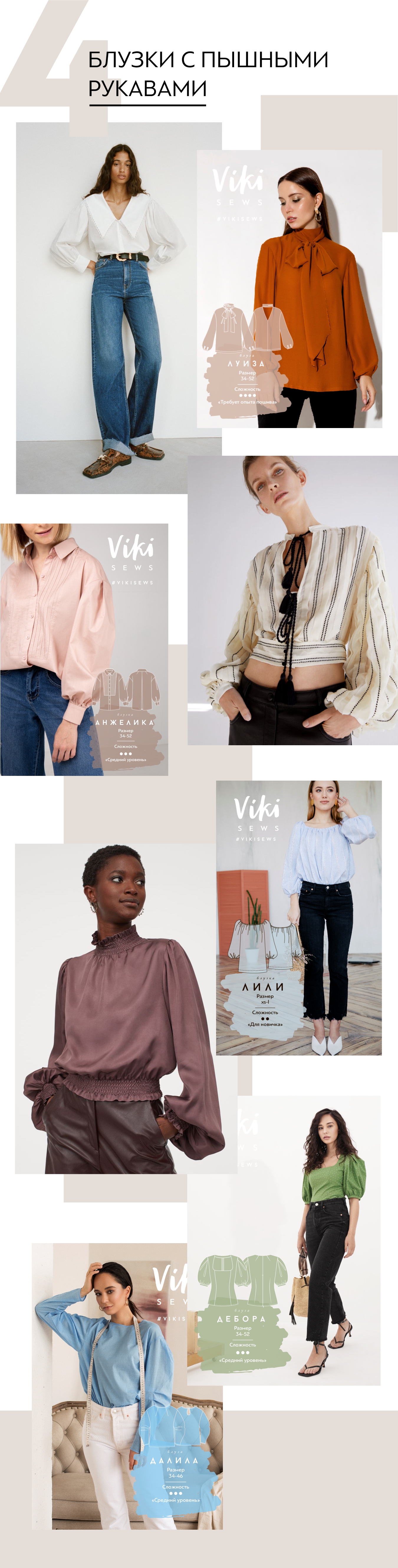 Все выкройки блузок от Vikisews собраны на сайте в разделе «Рубашки, футболки и блузки». Если вы пока побаиваетесь их шить, то приходите учиться технологии пошива и работе с дефектами посадки на курс «Новичок». Там вам покорится не только любая блузка, но и юбка, брюки, платье и даже пальто. Подробнее о курсе читайте здесь.
