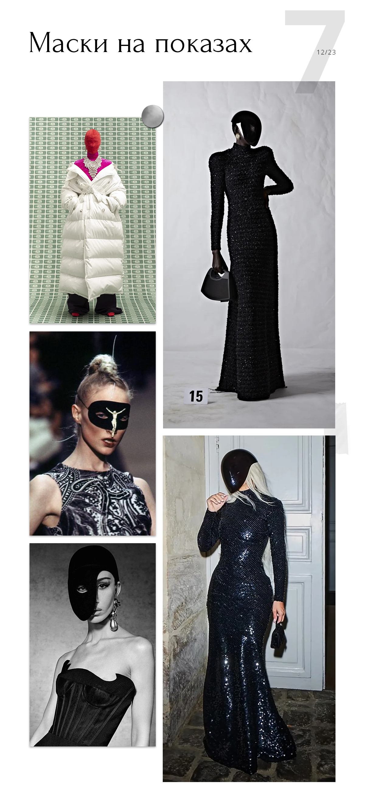 Конечно, венецианские образы, а особенно тема анонимности масок не оставляет равнодушными дизайнеров и сегодня. Александр Маккуин, Мартин Маржела, бренды Schiaparelli, Balenciaga, Vetements любили и любят заигрывать с анонимностью и с удовольствием трактуют тему масок на современный лад. Более того, фишка последнего стритстайла с недель моды — именно анонимность.