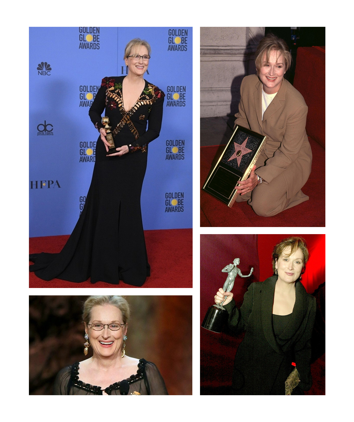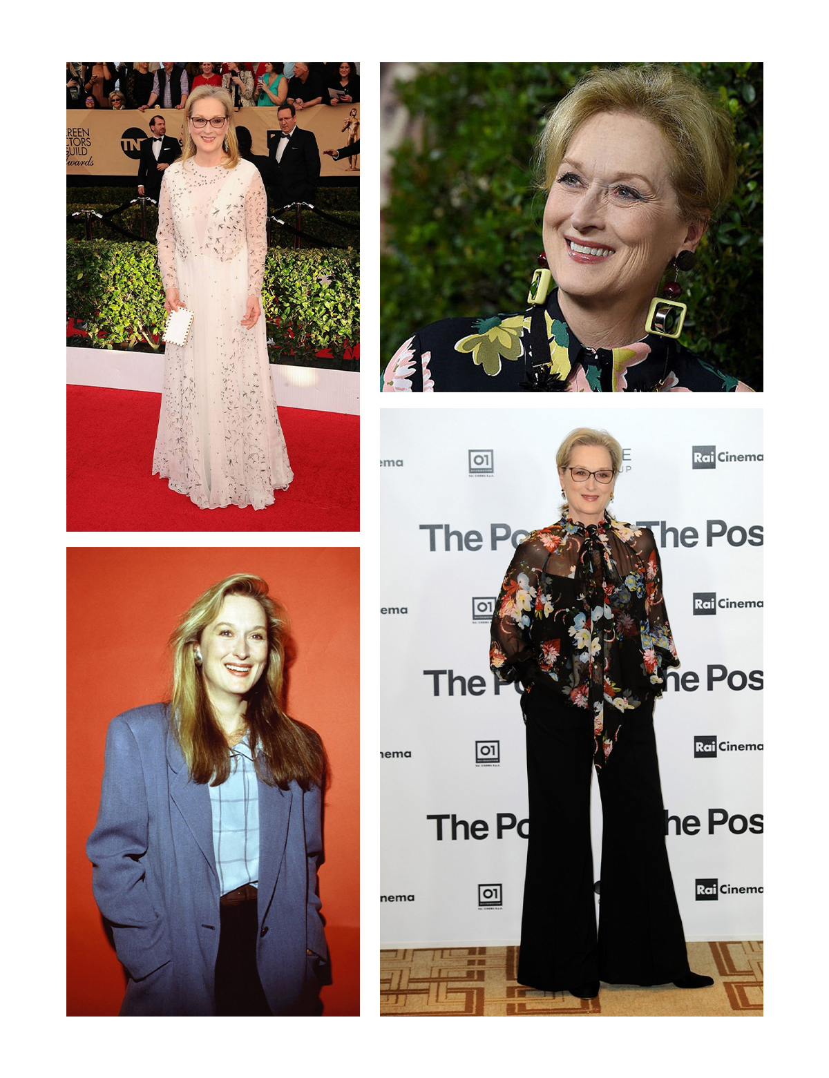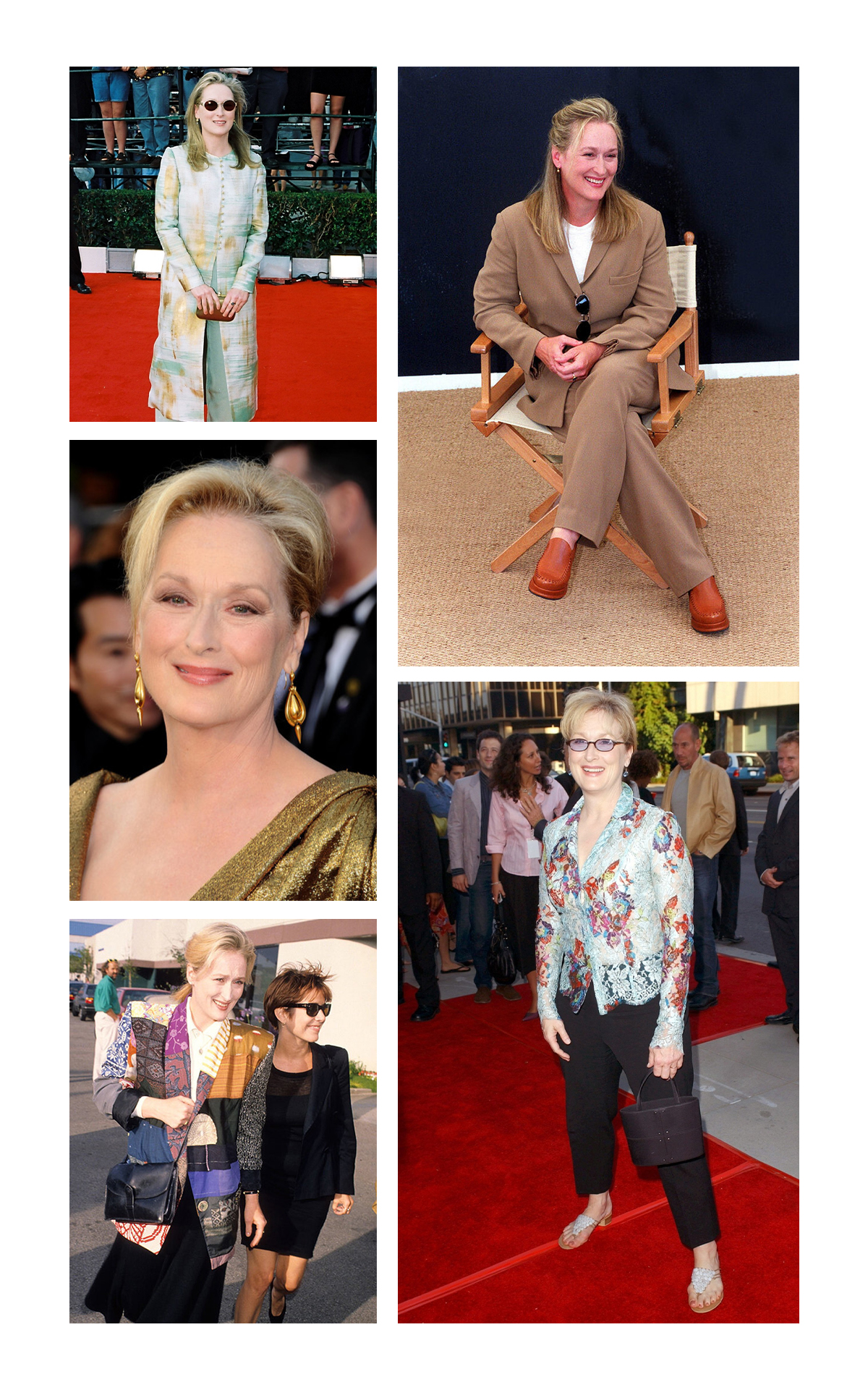 В скандалах Мерил Стрип больше практически не участвовала, а ее стиль или даже, скорее, направление — натуральность – всегда были и остаются с ней. Самые узнаваемые элементы в образах: