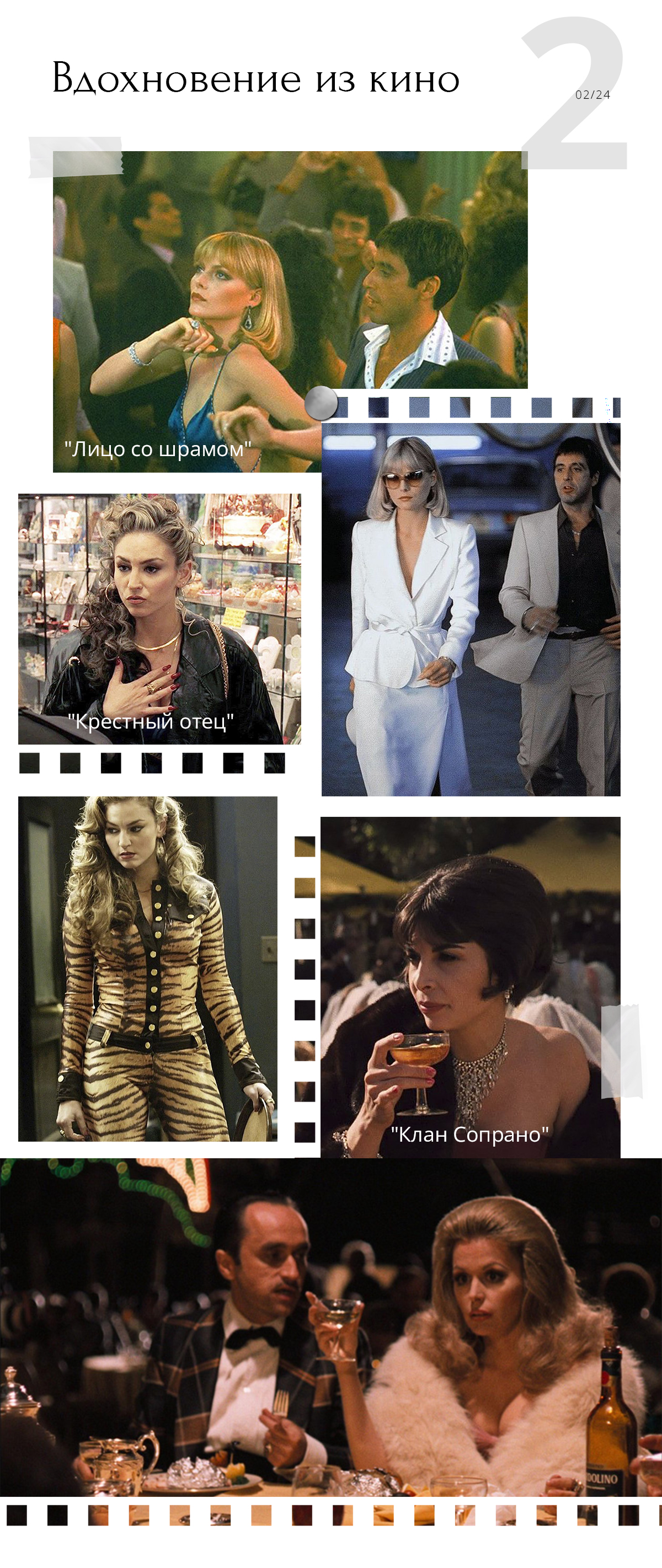За идеями и образами девушки, которые вдохновились этими образами, обращаются к культовым фильмам 90-х — «Крестный отец», «Лицо со шрамом», «Клан Сопрано». Если вам по душе этот тренд, стоит пересмотреть их.