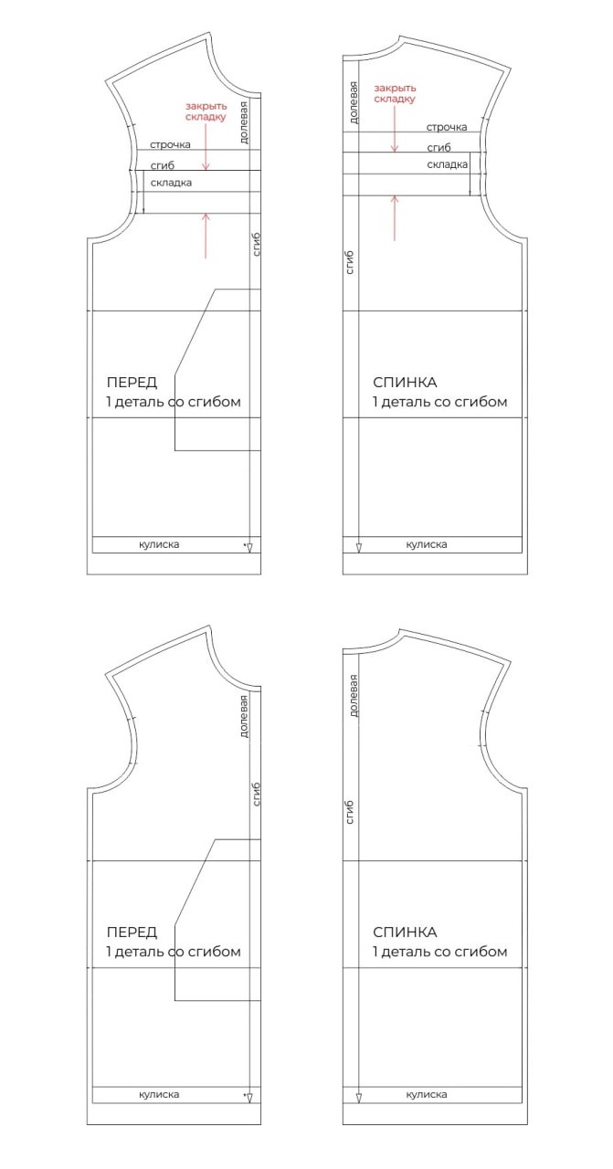 1. На детали переда и спинки закройте складку, совместив линии.
