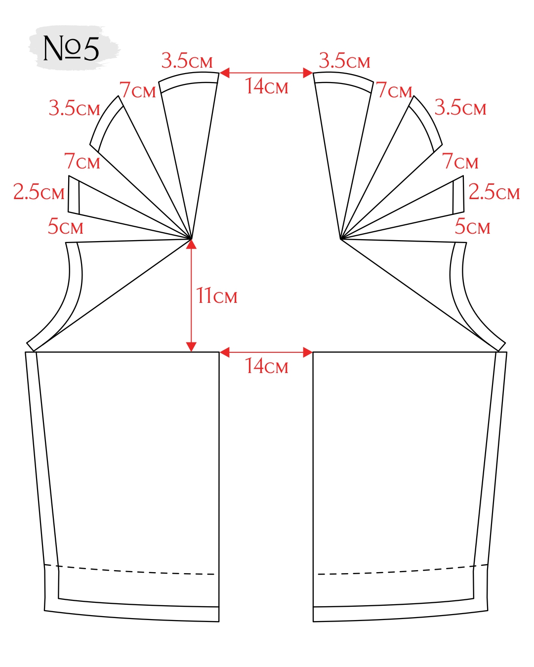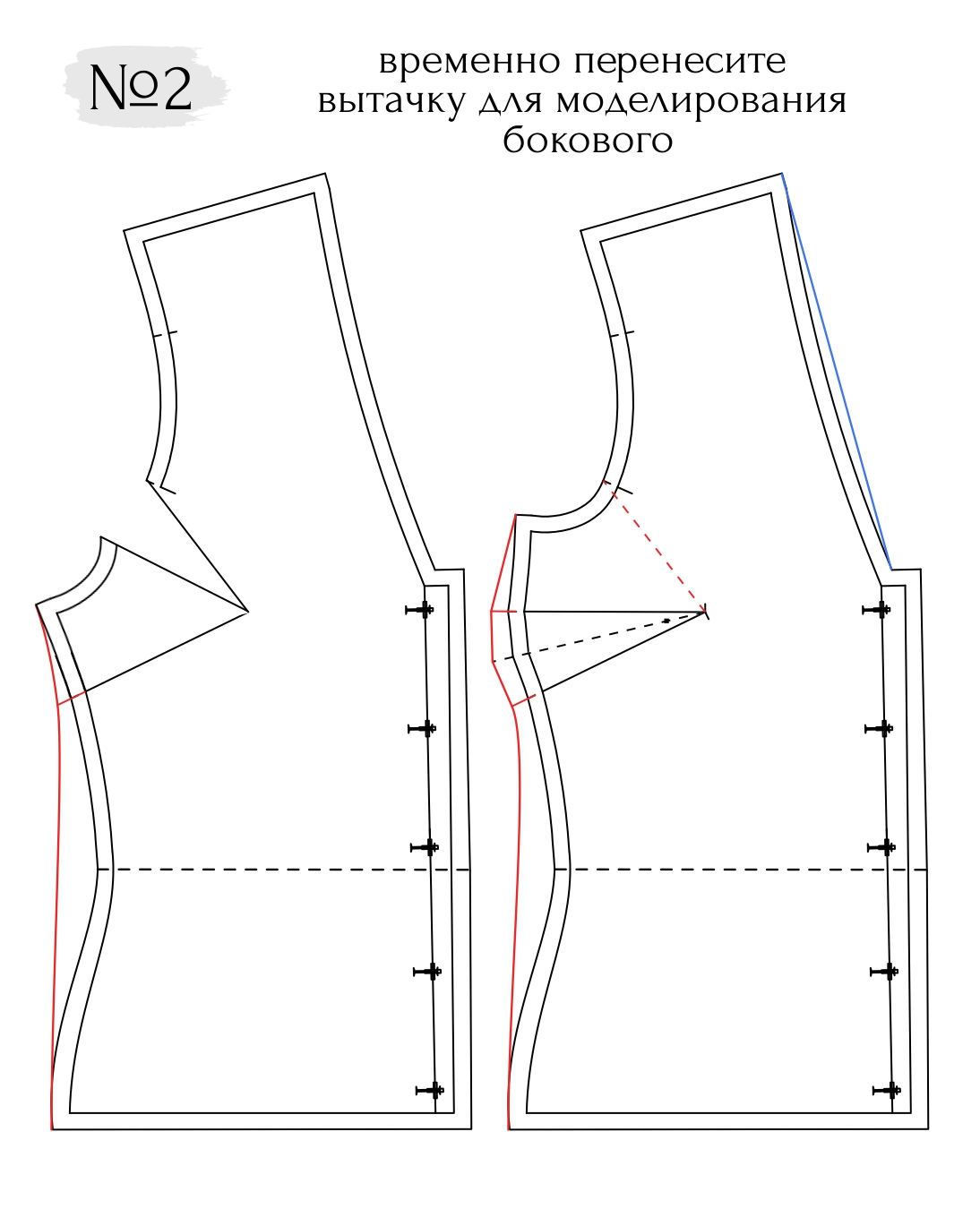 1. Удлините полочку и спинку от линии талии вниз на 20 см. Здесь будет проходить линия бедер.