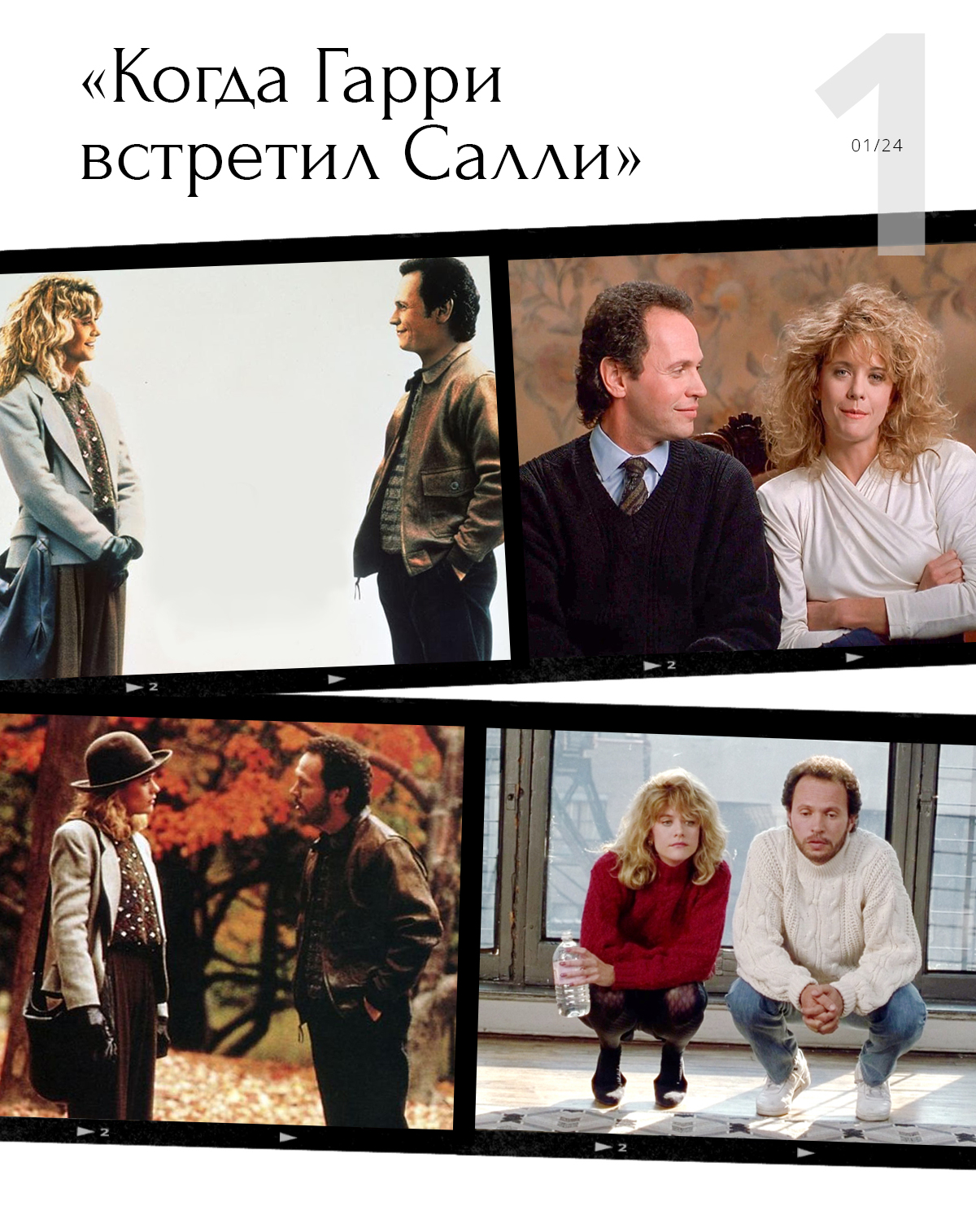 Посмотрите романтическую комедию «Когда Гарри встретил Салли» с Мэг Райан и Билли Кристалом. Приятная история, которая заставляет верить в любовь и чудо. Помимо симпатичного сюжета, этот фильм еще и пособие по стилю конца 1980-х и начала 1990-х. Бонусом — здесь тоже есть Новый год.