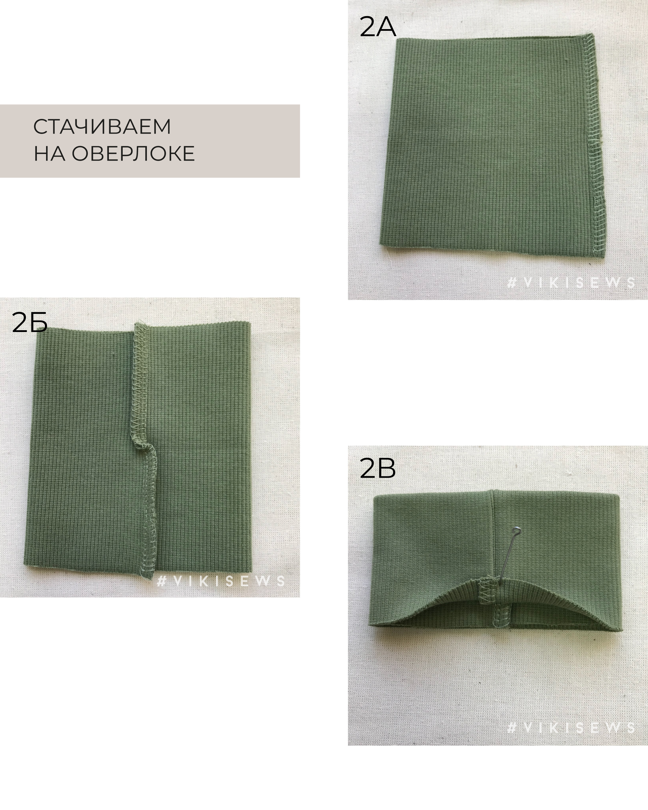 - Деталь манжеты сложите лицом внутрь, уравняйте короткие срезы и стачайте на оверлоке, как на фото 2а.