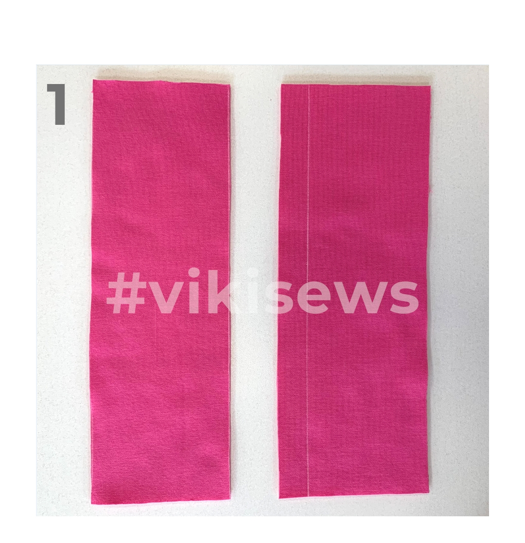1. На нижней детали по лицевой стороне наметьте вспомогательную линию, равную ширине припусков. В примере в карусели припуски равны 1 см, поэтому от края среза отступаем 2 см.