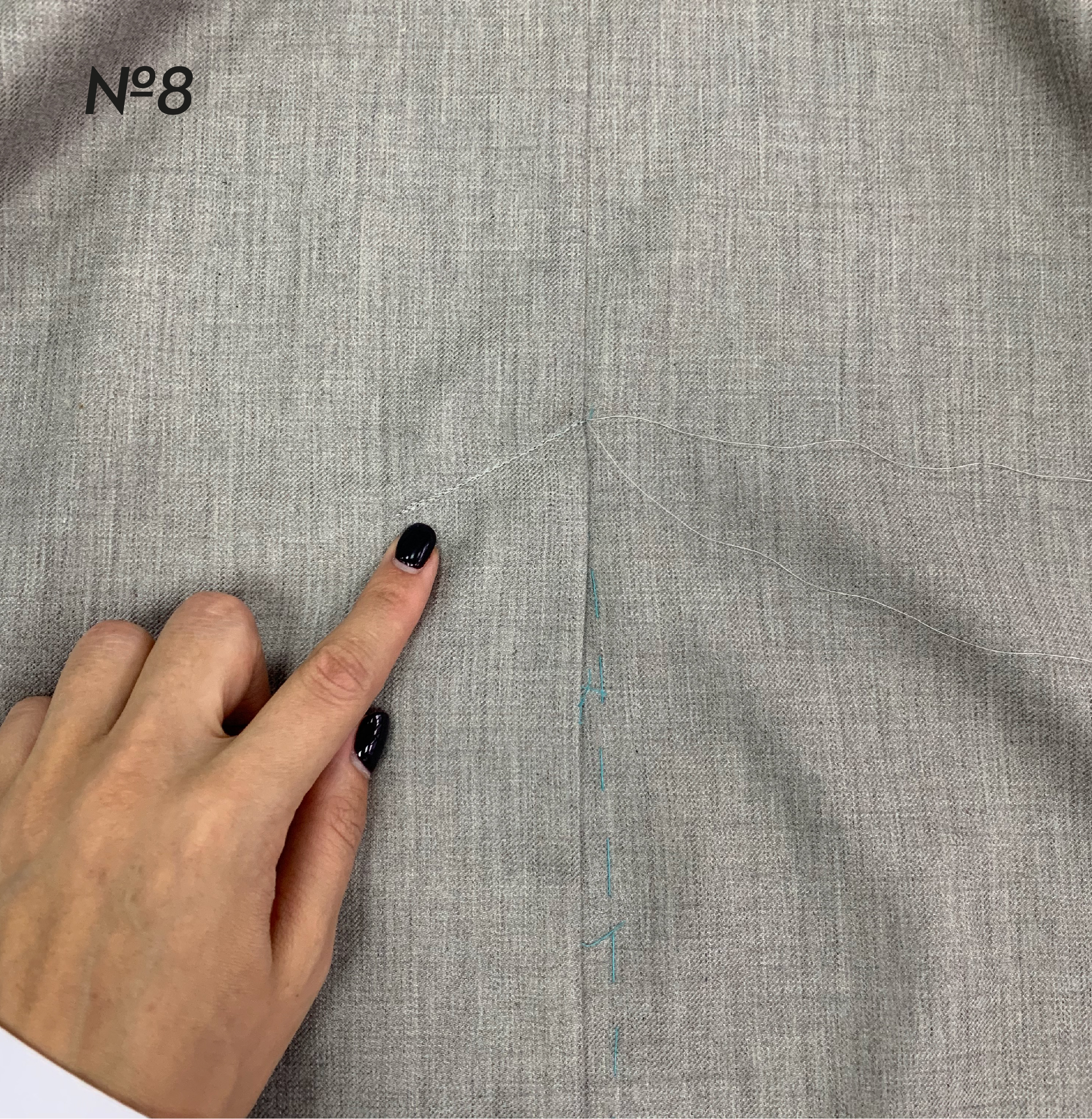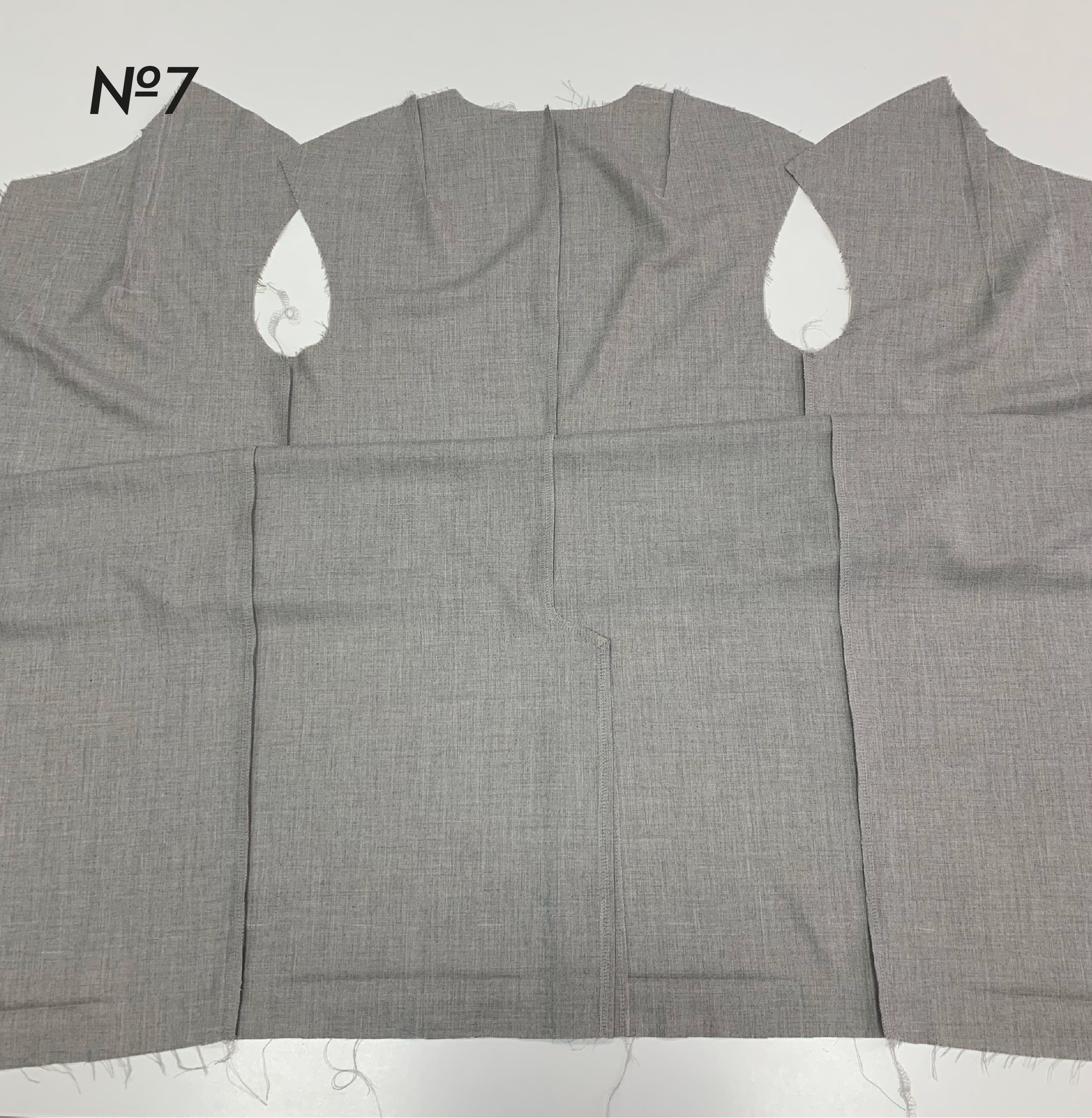 6. Стачайте шлицу по верхнему срезу. Обметайте средний шов спинки и верхний срез шлицы единой строчкой (фото 7).⠀