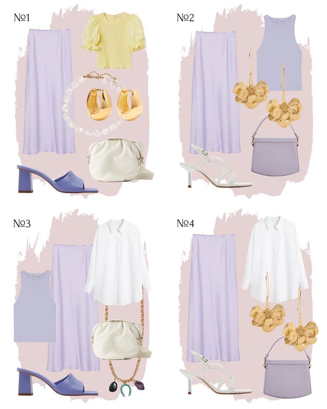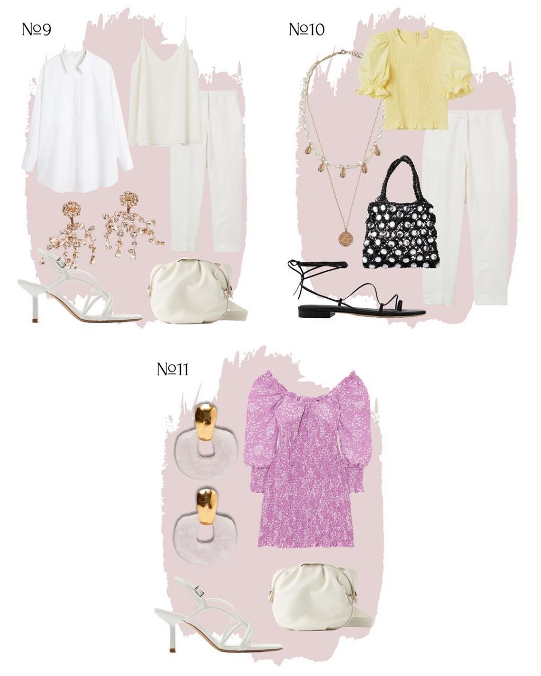 Из обуви — изящные босоножки, мюли на каблуке и сандалии. Сумки необъемные: «мягкие» и одна, которая держит форму. Украшения обязательны. Именно обувь и аксессуары позволяют сменить тон одного и того же образа от повседневного до вечернего.