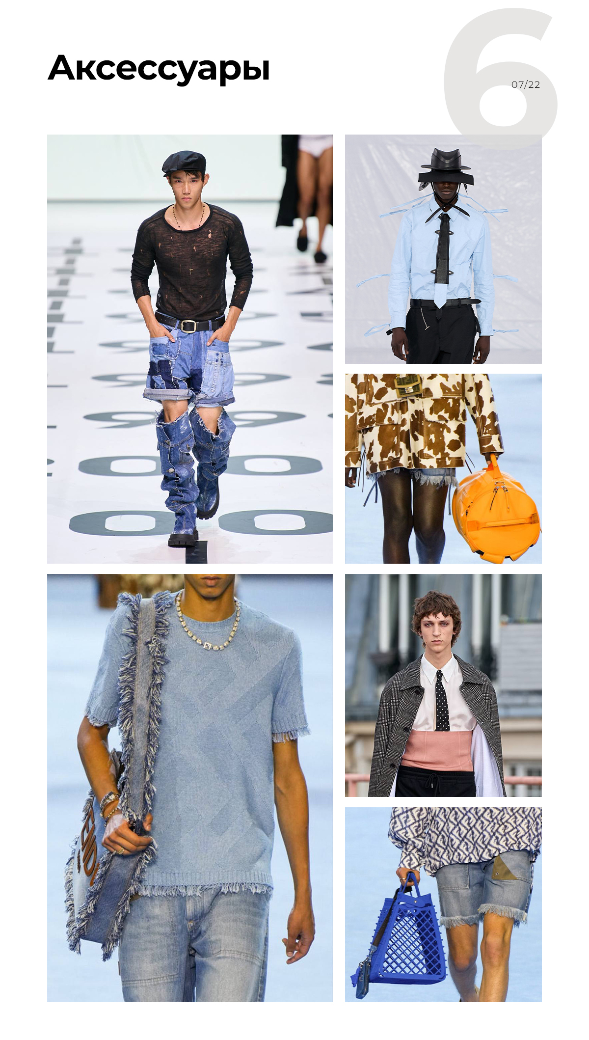 Дизайнеры предлагают мужчинам выбирать очень объемные сумки и нескучную, интересную обувь. Любителям галстуков особенно повезло — их вводят не только в образ со строгим костюмом, но и в расслабленные луки. Как фишка — галстук, заправленный в брюки, но это больше для эпатажа, а не для всех.
