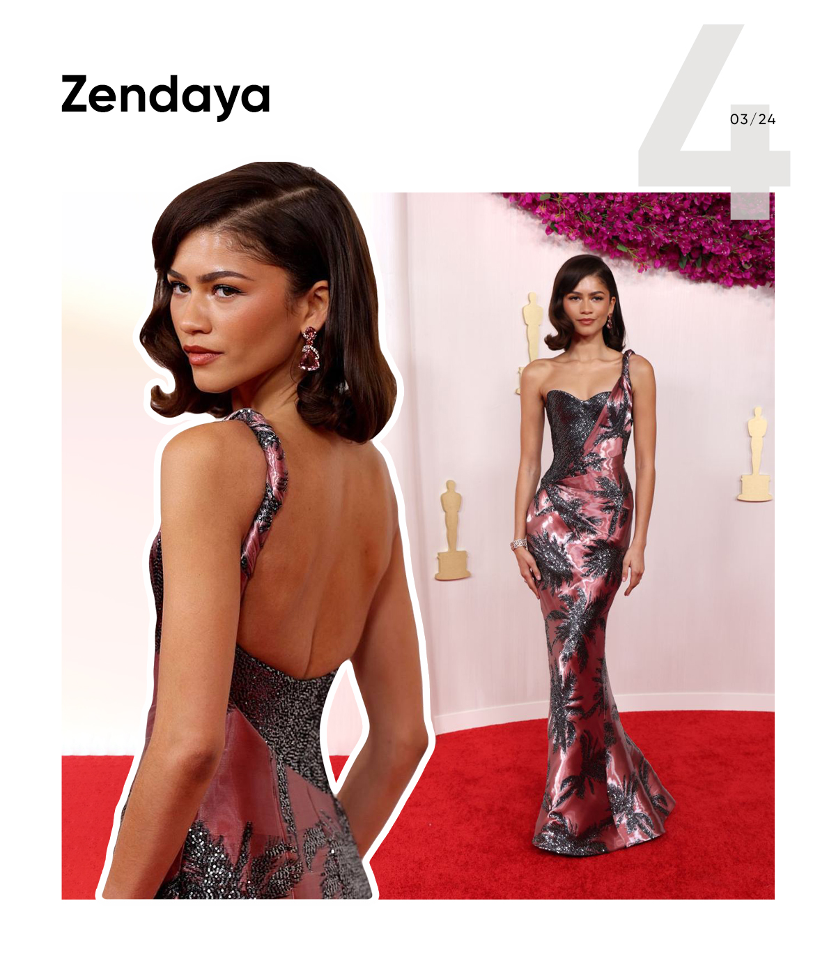 Zendaya in Armani Privé looked like the most beautiful Academy Awards statuette herself. Critics say her look might have started a “rosy glow” manicure trend.