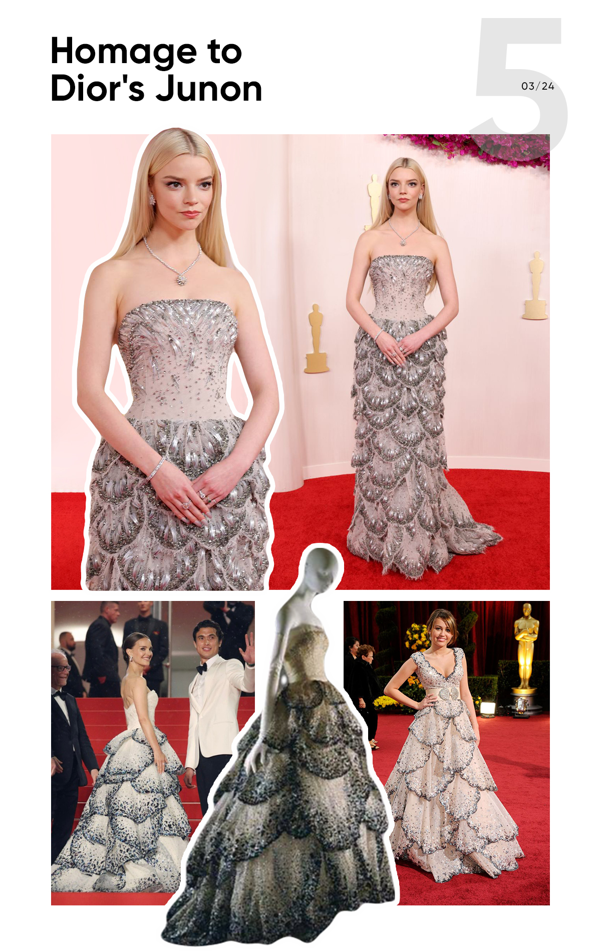 Anya Taylor-Joy wore an homage to the legendary 1949 Junon dress by Christian Dior. We have already seen dresses that were made based on the iconic design on Miley Cyrus and Natalie Portman.