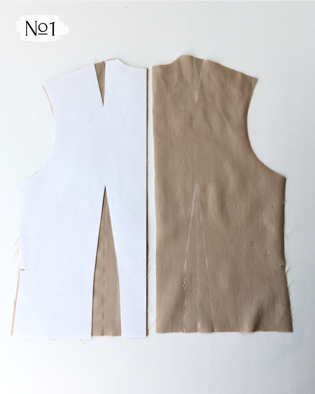 5. Сметайте каждую вытачку по косым линиям, сложите детали вместе и еще раз проверьте, что вытачки одинаковой длины.