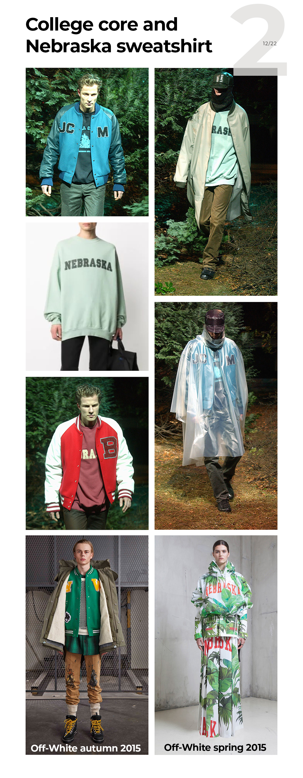 The famous Nebraska sweatshirt was a part of the Virginia Creeper collection that was inspired by American college students. By the way, such college core clothes are very in style today. Virgil Abloh repeated the famous Nebraska sweatshirt for Off-White SS 2015 collection. He admitted that Raf Simons’s works are an infinite source of inspiration for him.
