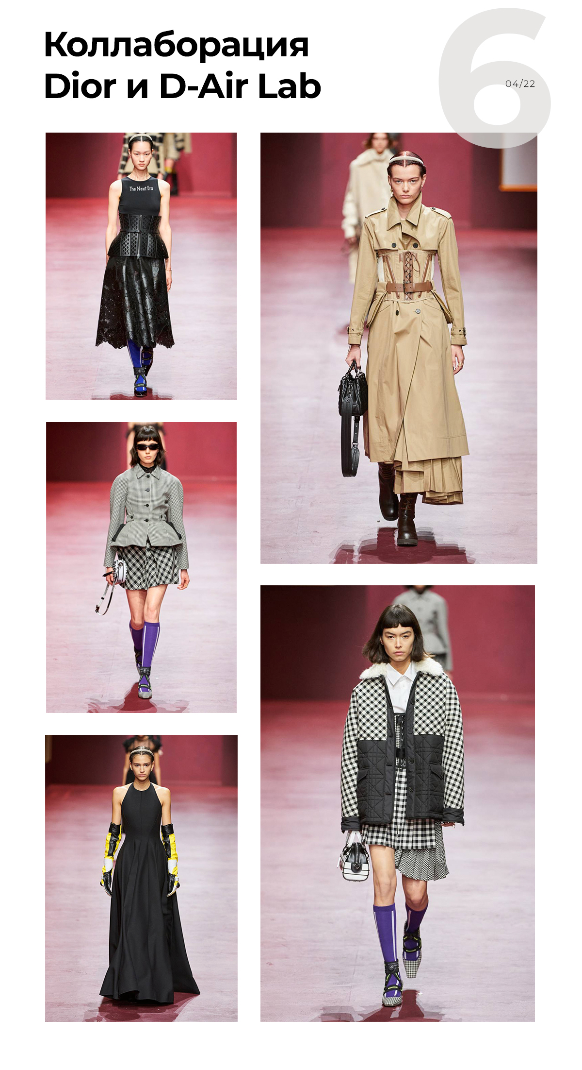 Коллаборация Dior и стартапа D-Air Lab стала достаточно необычной для модного дома. Эта коллекция про технологичность одежды и как технологичность можно соединить с дизайном. И конечно, команда дизайнеров попробовала переосмыслить силуэт знакомого жакета Bar.