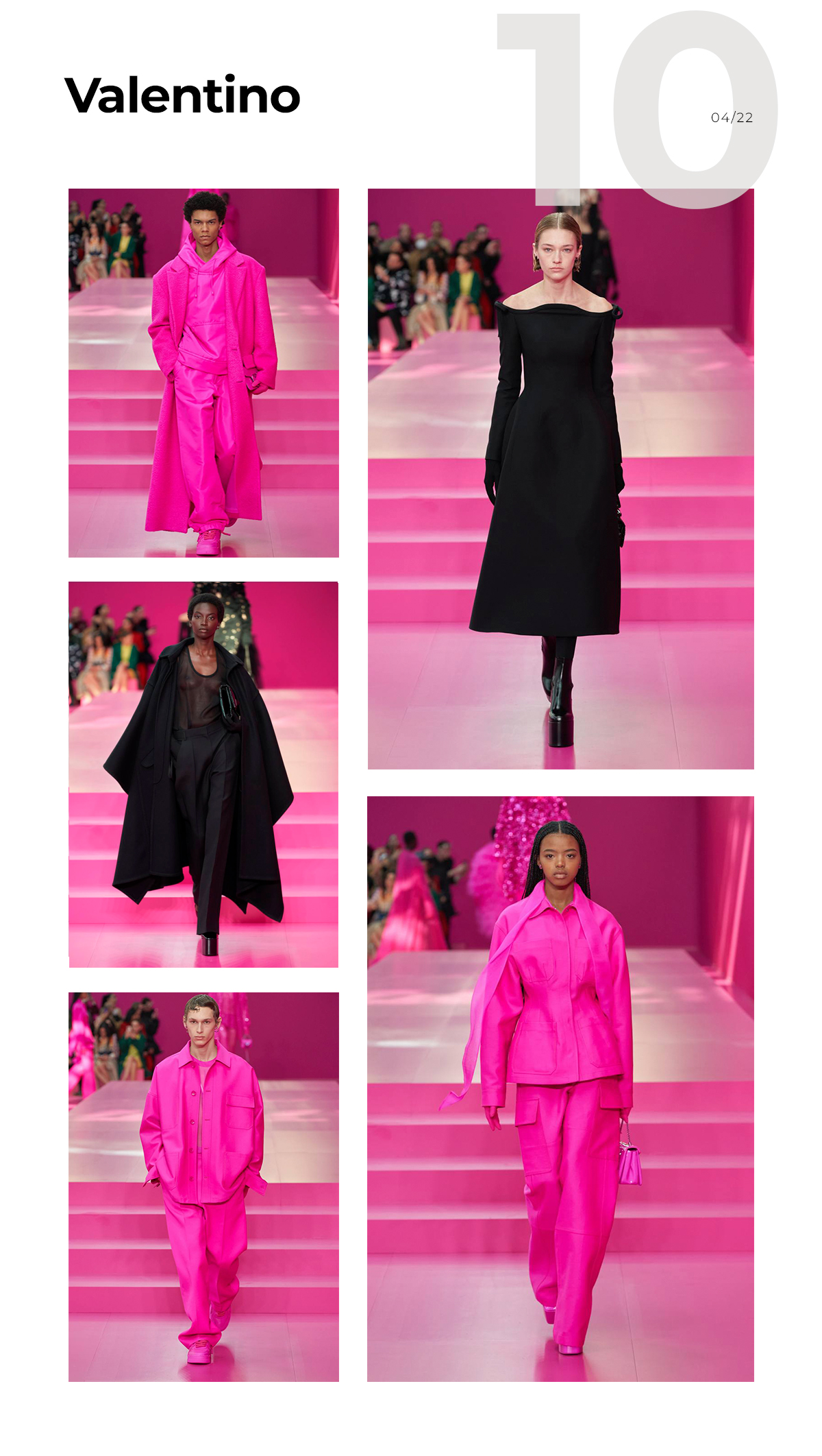 Главный цвет коллекции Valentino — розовый! Сам показ был поделен на две части — образы в неоновом розовом и черном.