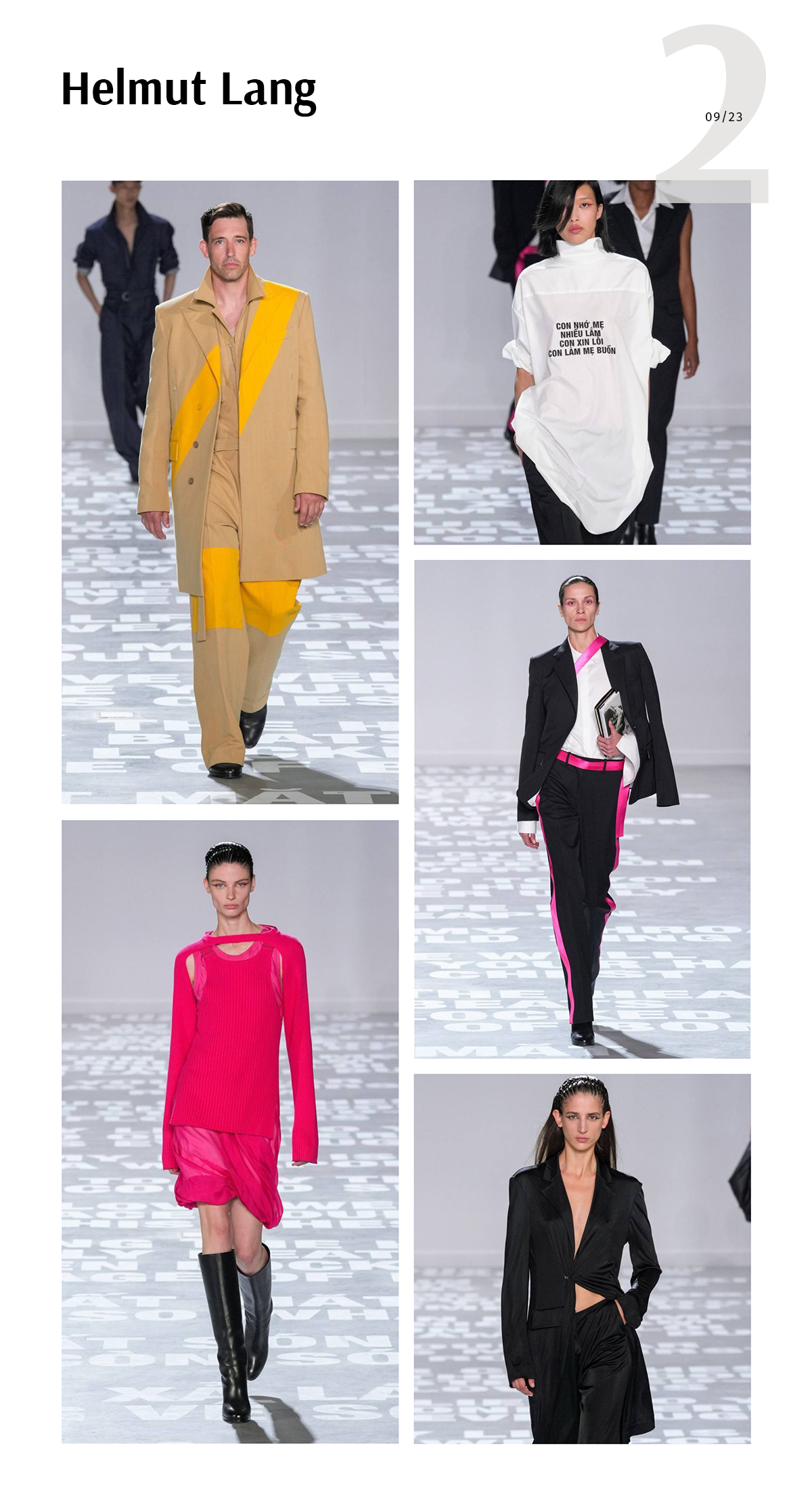Показ Helmut Lang активно рекламировали эксперты, как самое ожидаемое событие недели моды. Интерес подогревали потому, что для бренда это был первый показ дизайнера Питера До — ученика Фиби Файло и продолжателя концепции old celine, которую многие любят и боготворят. Ожидание не совпало с реальностью, а поэтому о показе много говорили. Резюме критиков — очень неоднозначно.