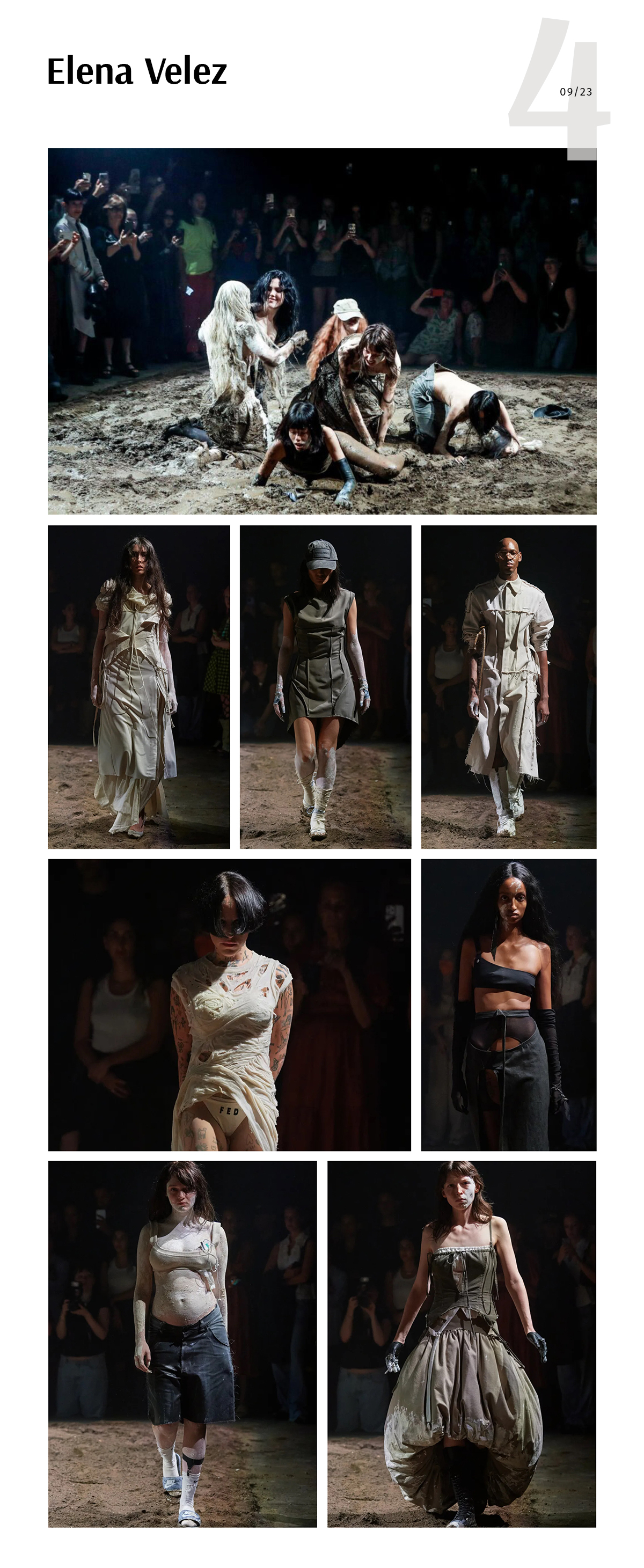 Грязный показ Elena Velez наделал шума даже в комментариях под постом @vikisews.patterns. Дизайнер в буквальном смысле заставила возиться в грязи моделей на подиуме, а одежда просто напоминала лохмотья. В чем смысл? Так дизайнер размышляет о независимости, силе и «не принесенной женственности». Хотя стоит признать, что шоу не тянет на оригинальное и кучи грязи мы уже видели у Balenciaga.