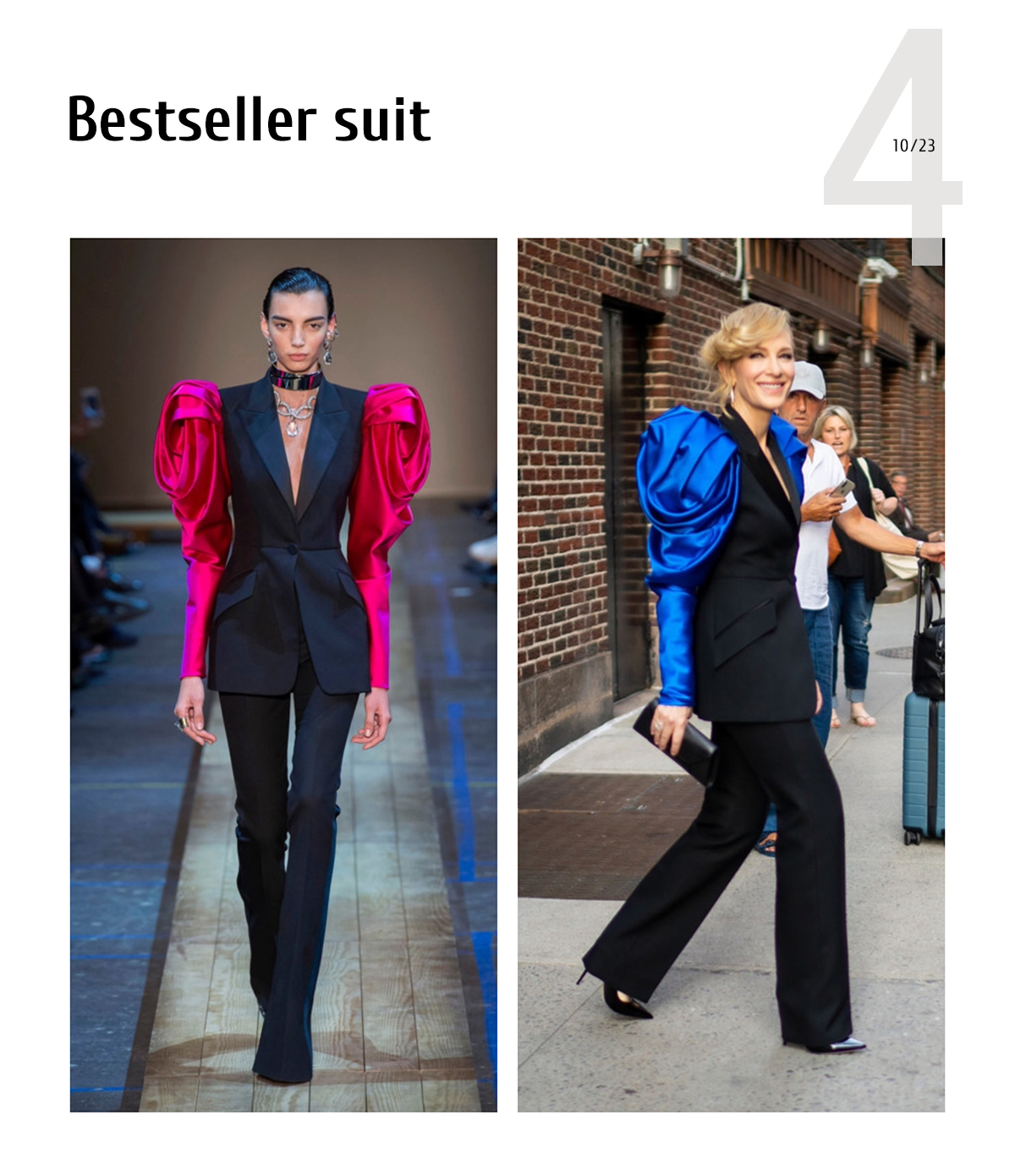 In general, Sarah Burton’s creations were more safe and commercially successful than McQueen’s, but her designs often became bestsellers. The gorgeous suit from the FW 2019 collection is among them. The suit was worn by many top celebrities and copied by mass-market retailers. Cate Blanchett wore the suit twice.