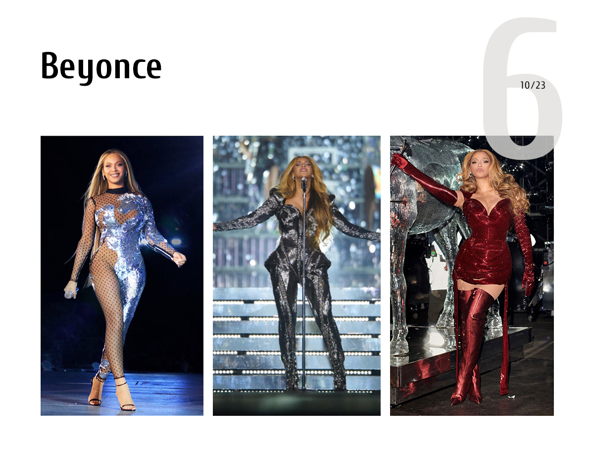 Sarah Burton created costumes for Beyonce’s already legendary Renaissance World Tour. The Alexander McQueen brand curated more than ten outfits for the singer.