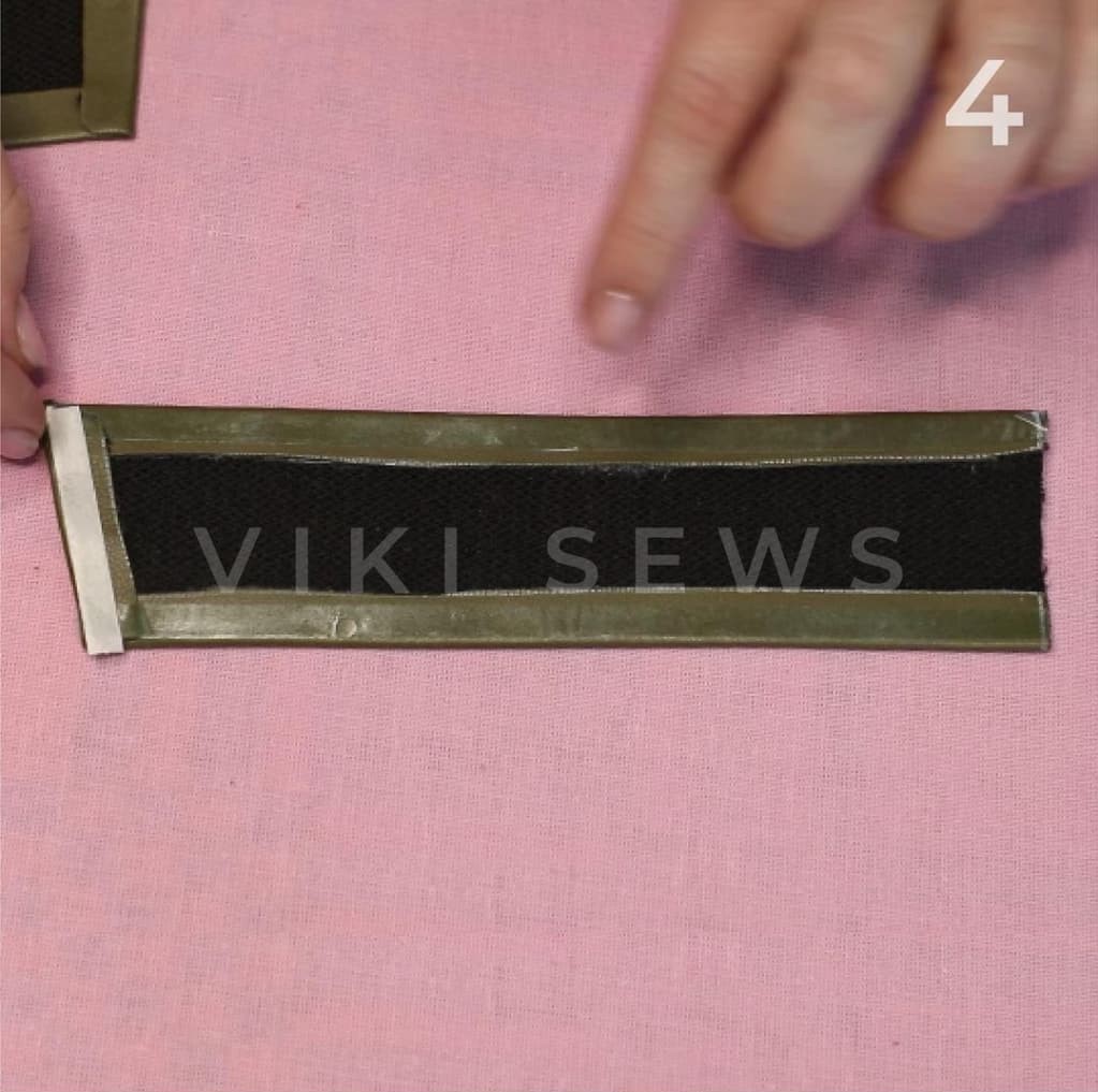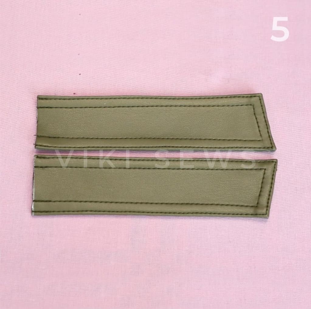 Отстрочите погоны по периметру, кроме прямой короткой стороны, двойной отделочной строчкой. Приутюжьте детали.