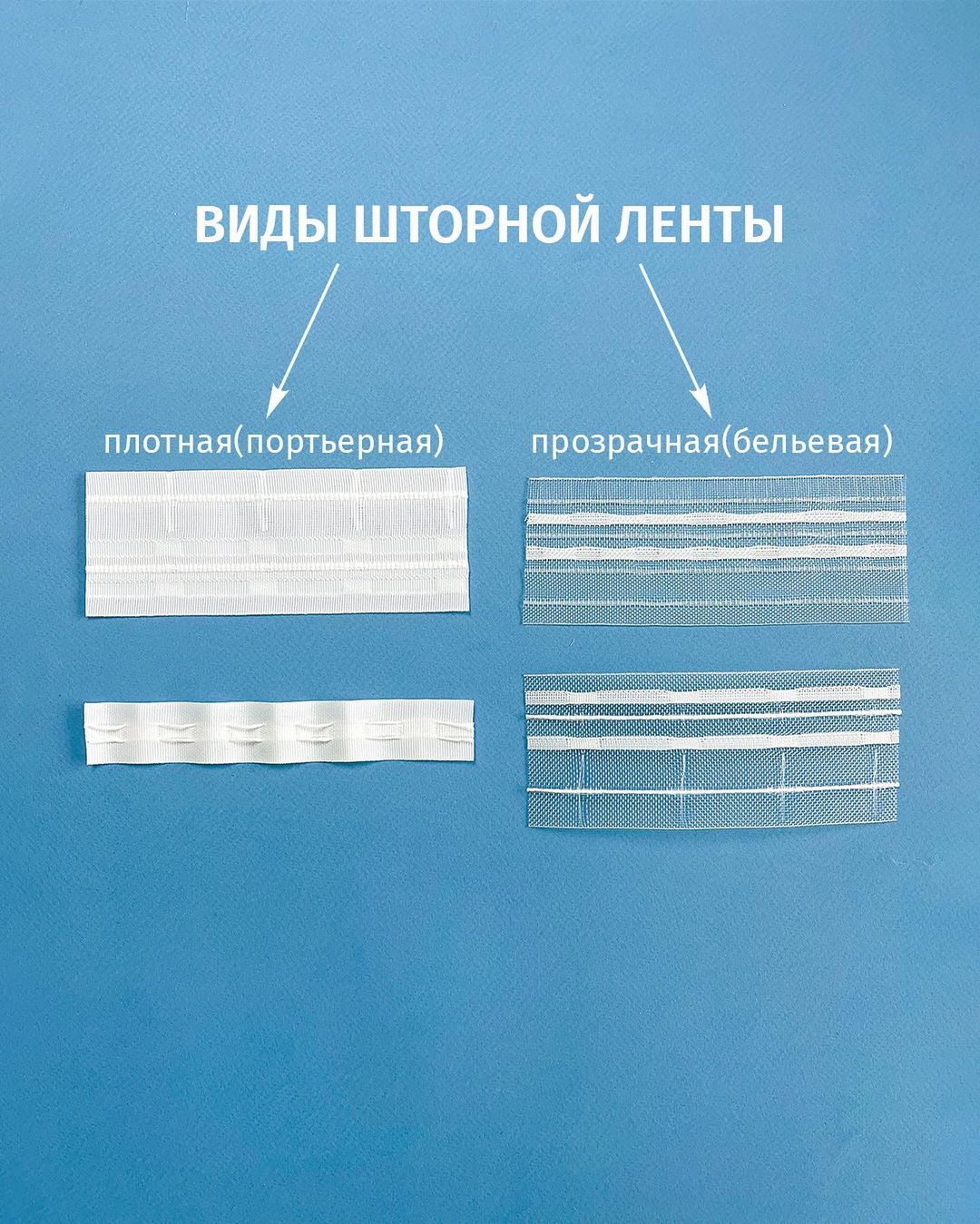 Для тонких, полупрозрачных материалов (органза, тюль, вуаль) лучше брать прозрачную ленту, чтобы она оставалась незаметной. Для плотных или тяжелых тканей и если нужно добиться густой сборки, лучше выбрать плотную (белую) ленту. Она прочнее и выдерживает бóльшую нагрузку.