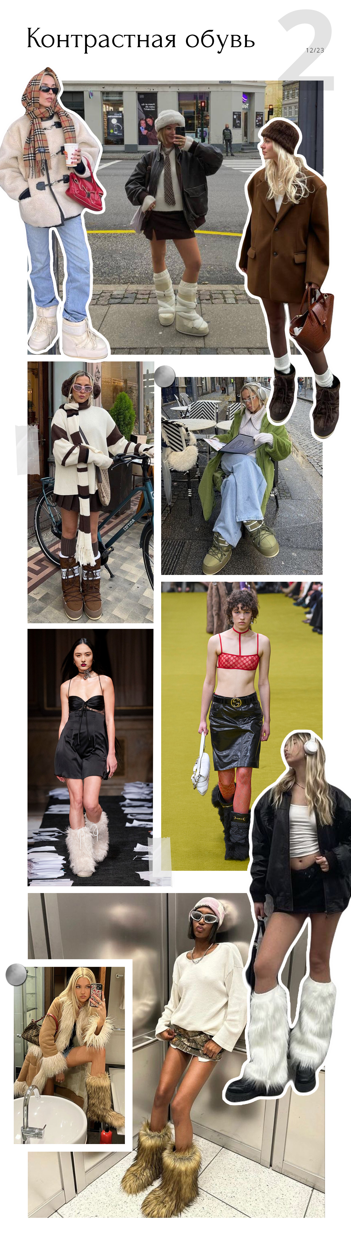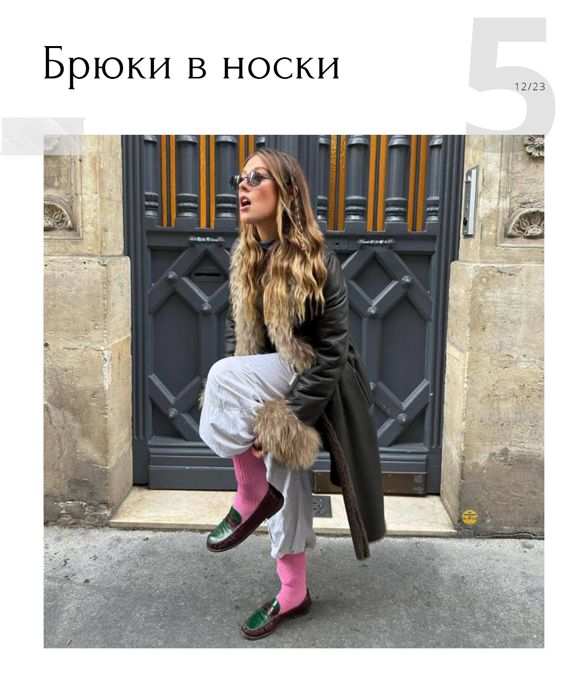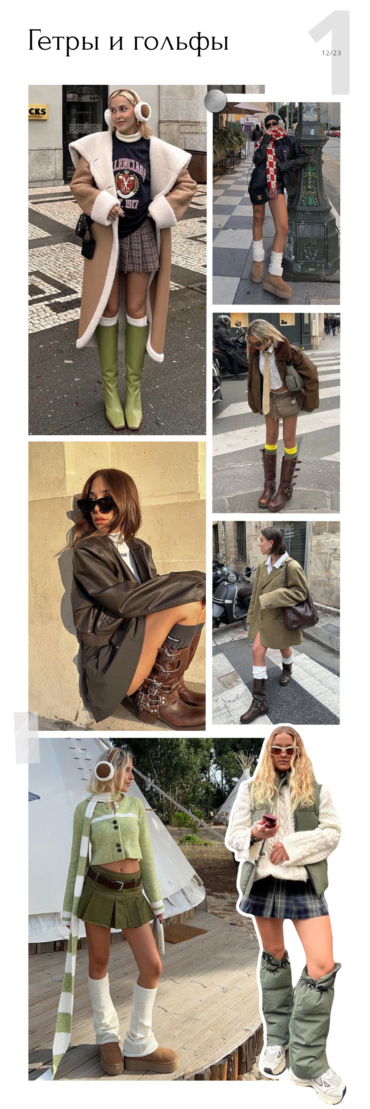 Гетры и гольфы, которые торчат из сапог, — пожалуй, один из самых «залетевших» в модные гардеробы трендов. Их можно выбирать в цвет колготок, обуви или делать акцентом.