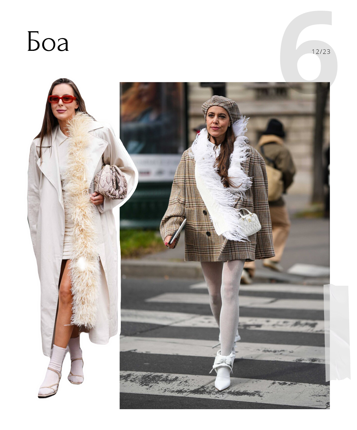 Обмотать вокруг шеи боа вместо шарфа — красивый способ усложнить базовый образ. Совет от стилиста: пусть боа будет главным акцентом, а остальные вещи можно выбрать попроще.