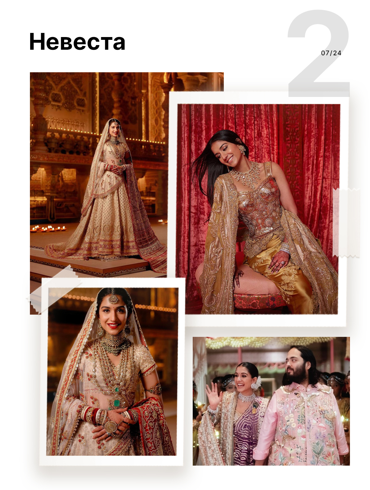 Ну а сегодня мы просто обязаны рассмотреть свадебные наряды наследников двух богатейших семей Индии — Ананта Амбани и Радхики Мерчант, а также их гостей. Листайте!