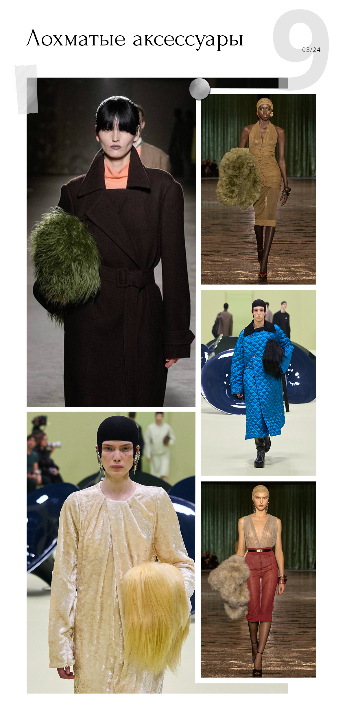 Ну, и новые трендовые аксессуары на осень и зиму тоже лохматые. Некоторые сумки выглядят как парики, но можно выбрать и менее экстремальные варианты.
