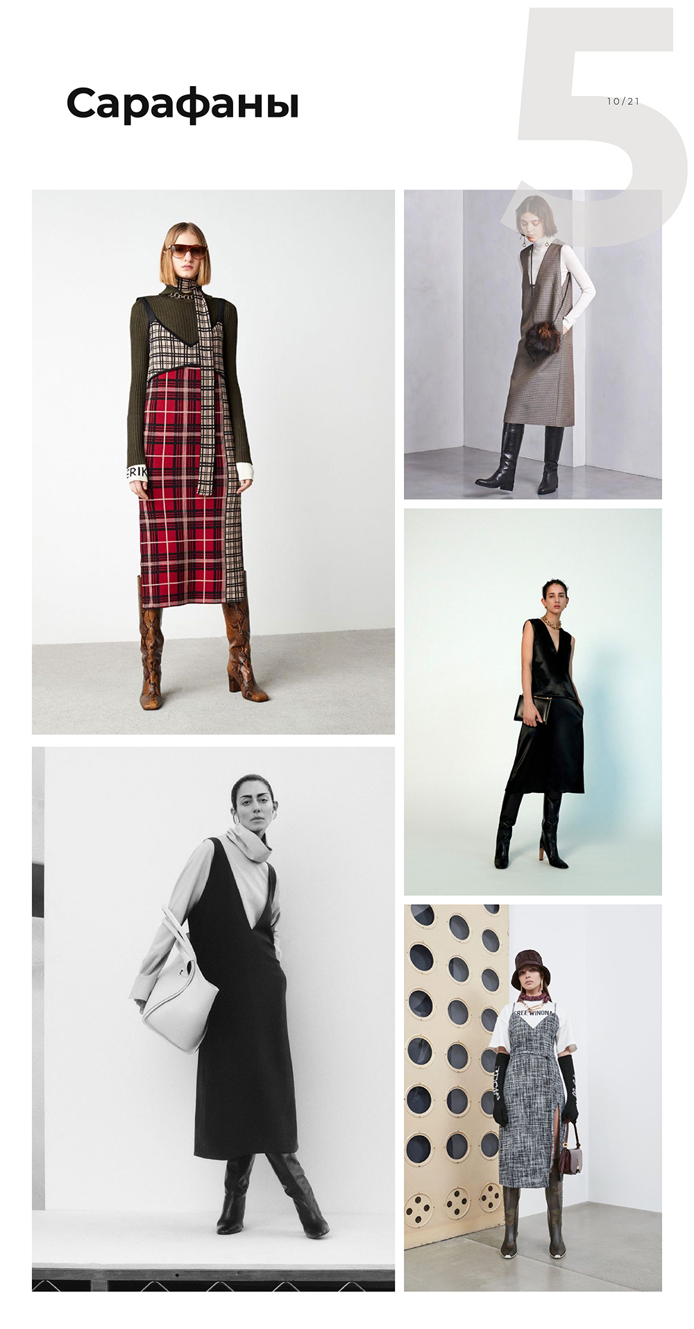 Сарафан — удачный выбор для холодной погоды, ведь с ним можно составить многослойный образ. Например, надеть его на рубашку или водолазку. Хорошо будут смотреться варианты из экокожи. Берите на заметку сарафаны Стейси, Алиша и Арья.