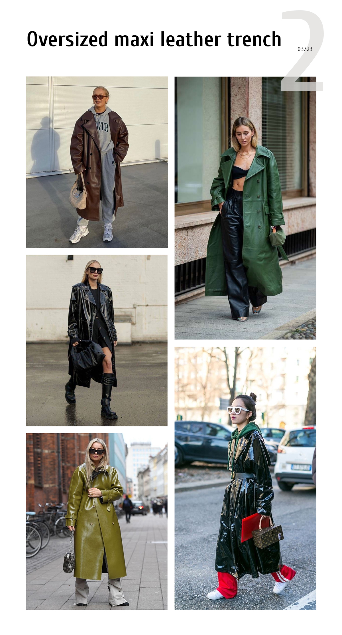 An oversized maxi leather trench coat is not only super trendy, it actually goes really well with many clothes you might already have. That’s why it’s easy to create various outfits with that kind of trench coat in the lead fashion role.