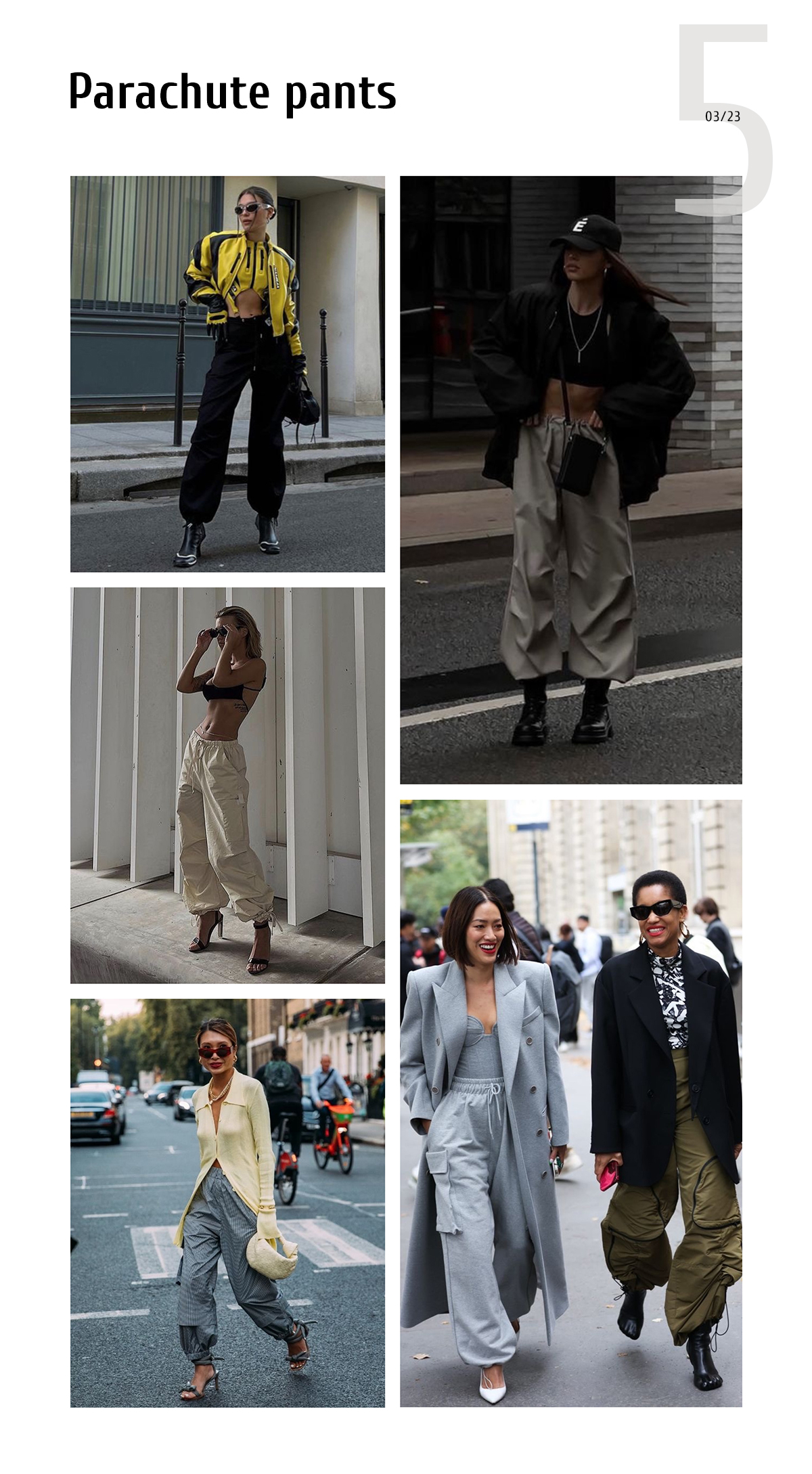 The parachute pant trend is simply meant to fit into your modern wardrobe puzzle. Wear the pants with high heels or with comfy sneakers. Consider giving this trend a try before it becomes mainstream.
