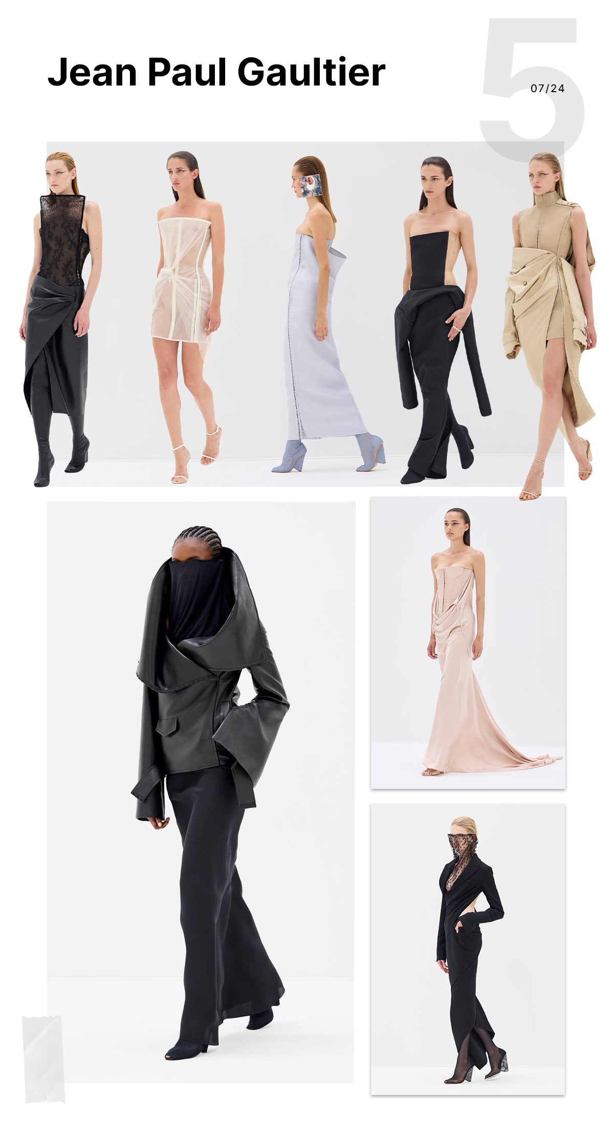 Кутюр для Jean Paul Gaultier на этот раз творил креативный бренда Courrèges Николя ди Феличе. Уже пару сезонов коллекции для бренда разрабатывают разные приглашенные дизайнеры.