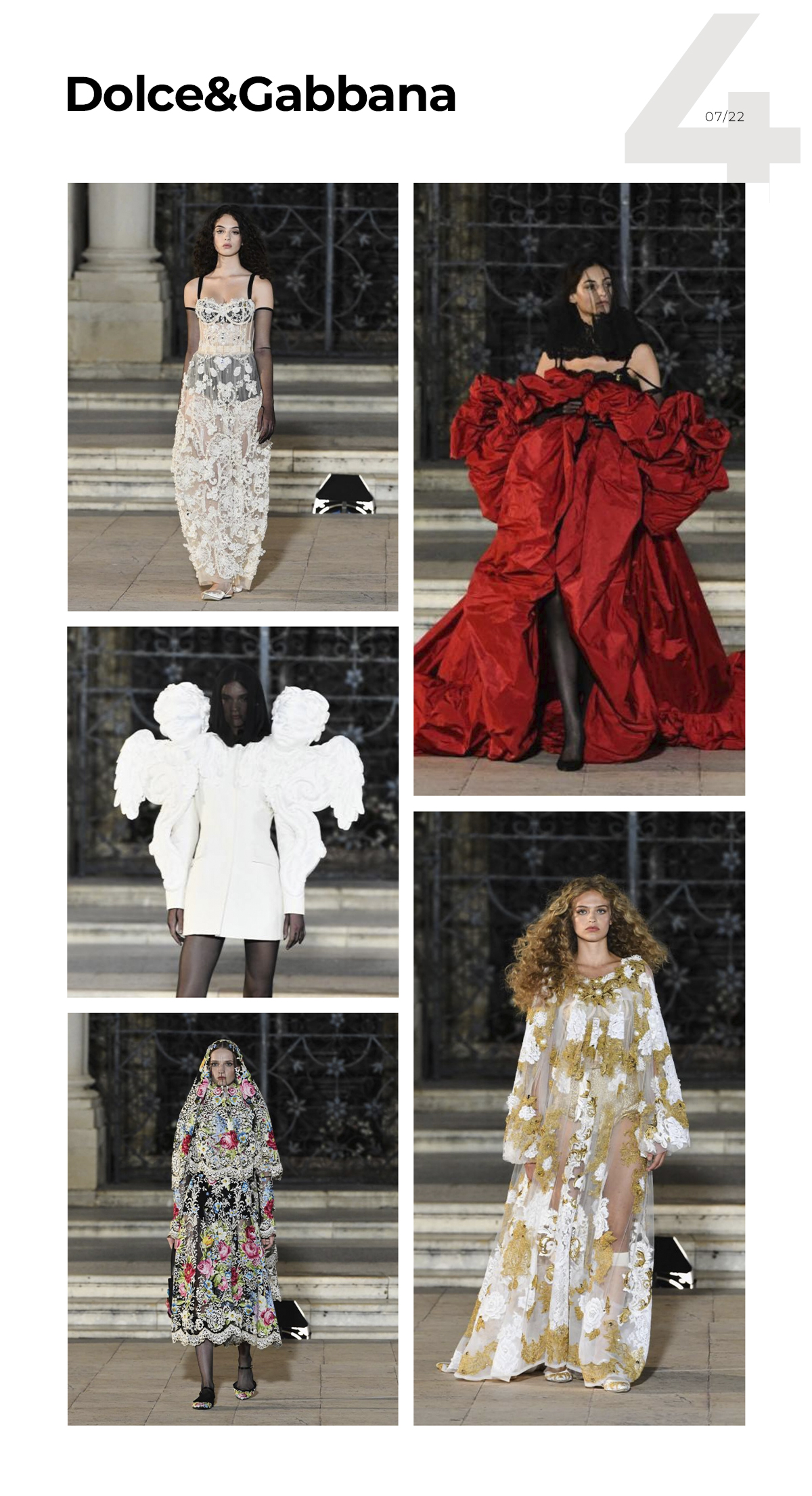 Dolce&Gabbana удивили! Бренд, который долгое время делал абсолютный модный неликвид, вдруг выпустил достойную коллекцию, которую определенно стоит посмотреть. Их показ — настоящий часовой перформанс, посвященный эстетике сицилийской вдовы. Готика, пышные юбки, мозаика, цветы и вышивка — все узнаваемые маркеры Dolce&Gabbana гармонично вписались в представление. Браво!