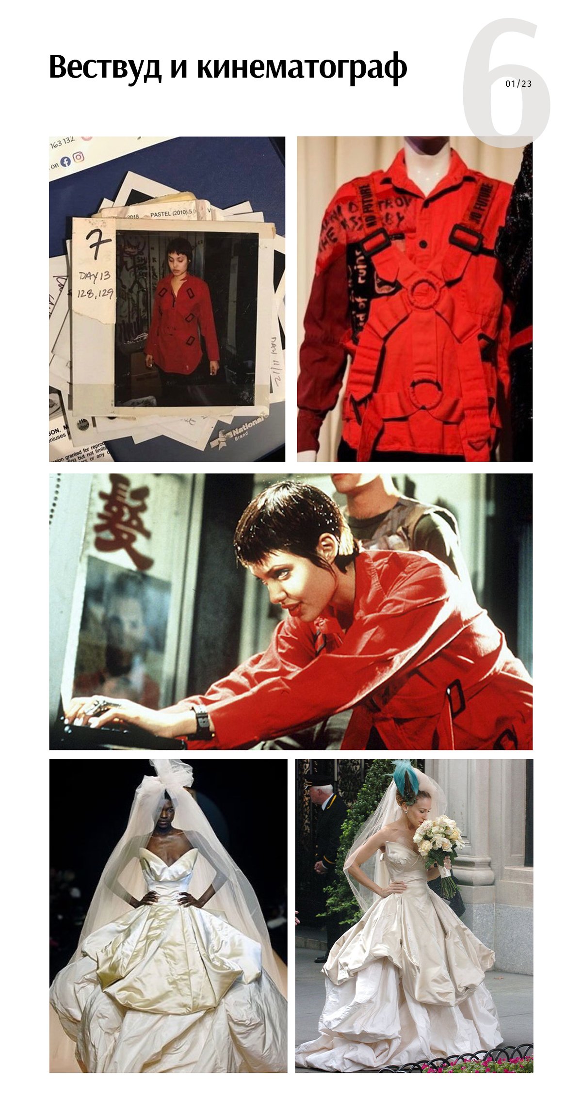 Вторая из культового фильма «Хакеры» 1995 года с Анджелиной Джоли. Там ее героиня носит ярко-красную рубашку от Vivienne Westwood, которую украшает конструкция для крепления парашюта из коллекции 1977 года.