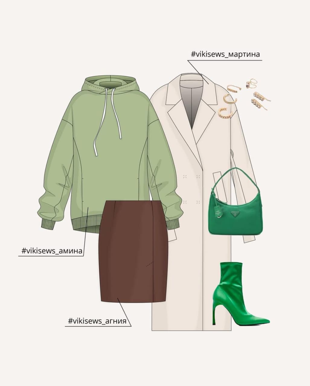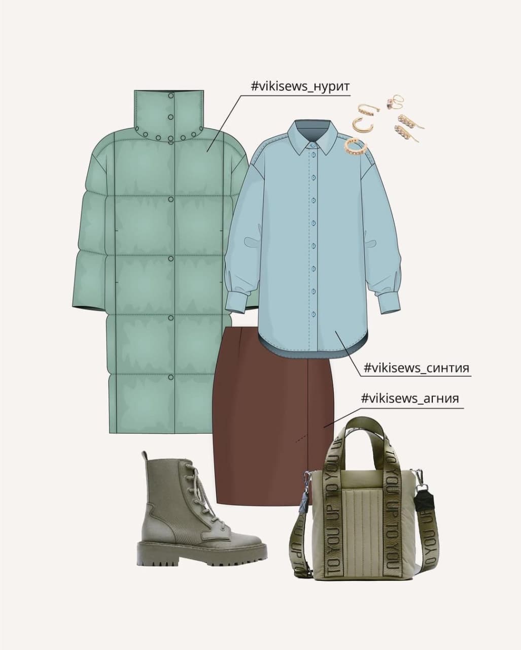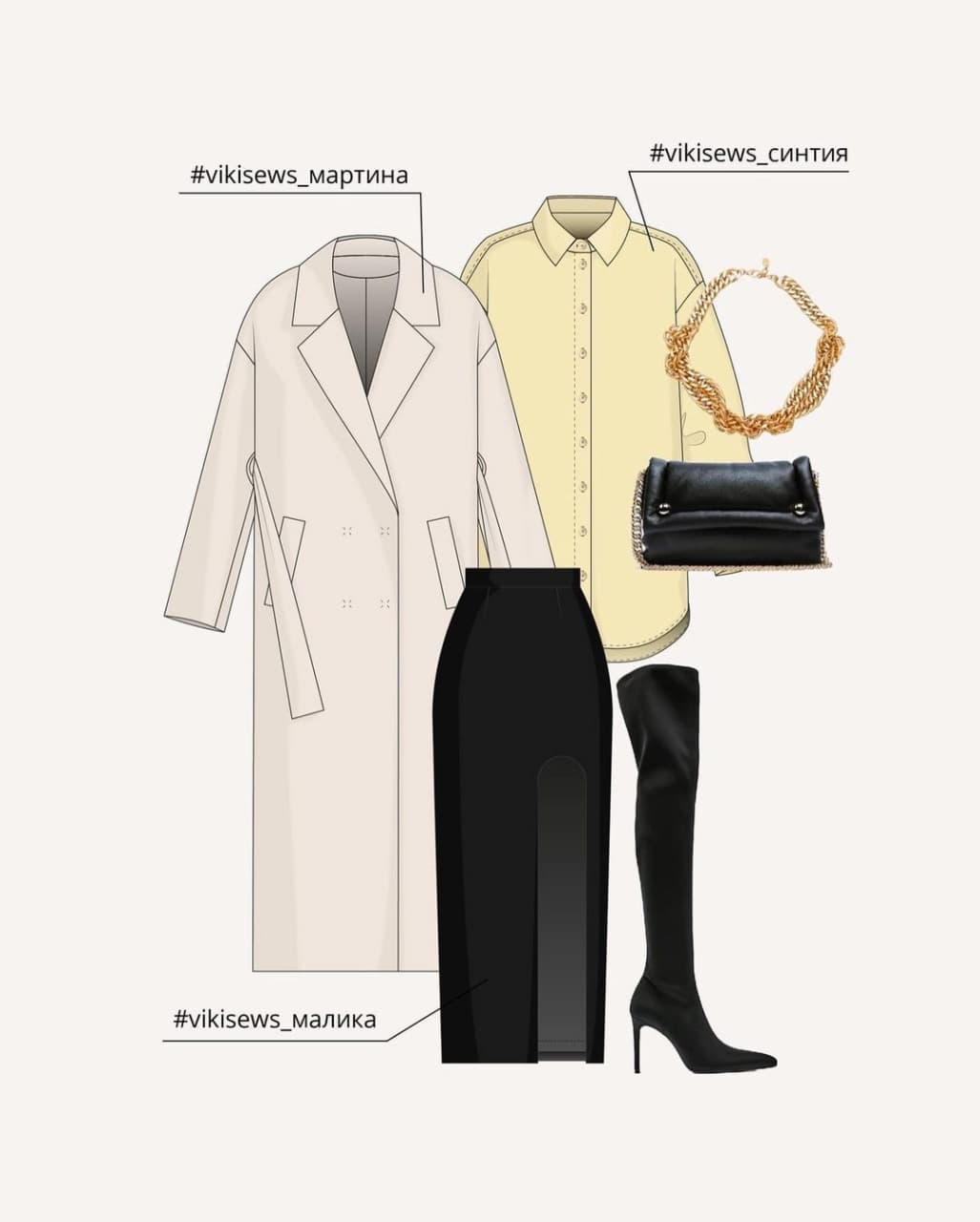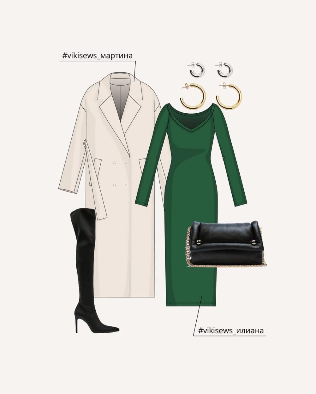 Готовые выкройки верхней одежды — это пуховик Нурит и пальто Мартина.