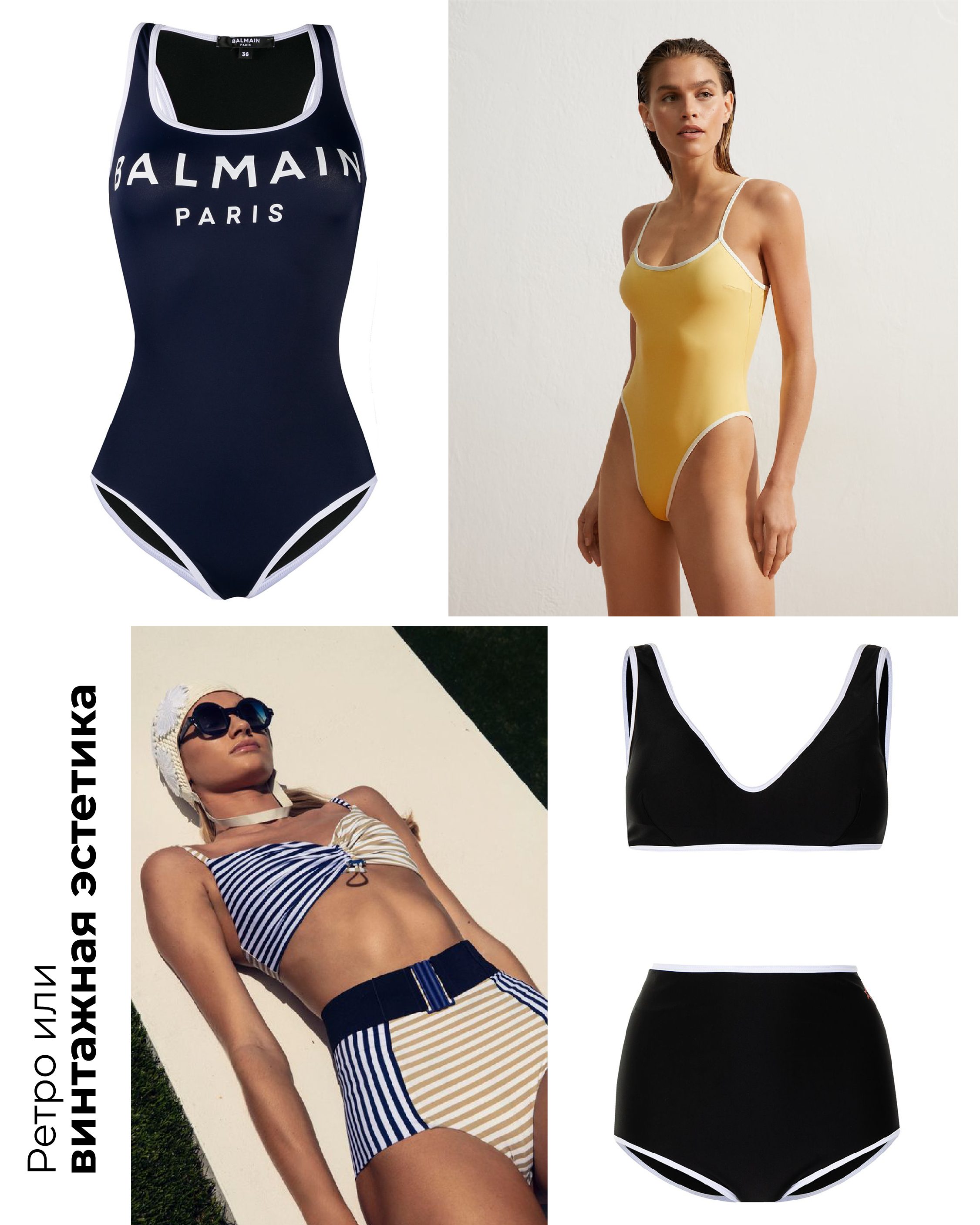 Здесь вы вольны брать идеи из любого десятилетия: 1950-е, 60-е или 70-е. Например, лиф-бралетт и высокие трусики или спортивный вариант, но в стилистике 60-70-х.