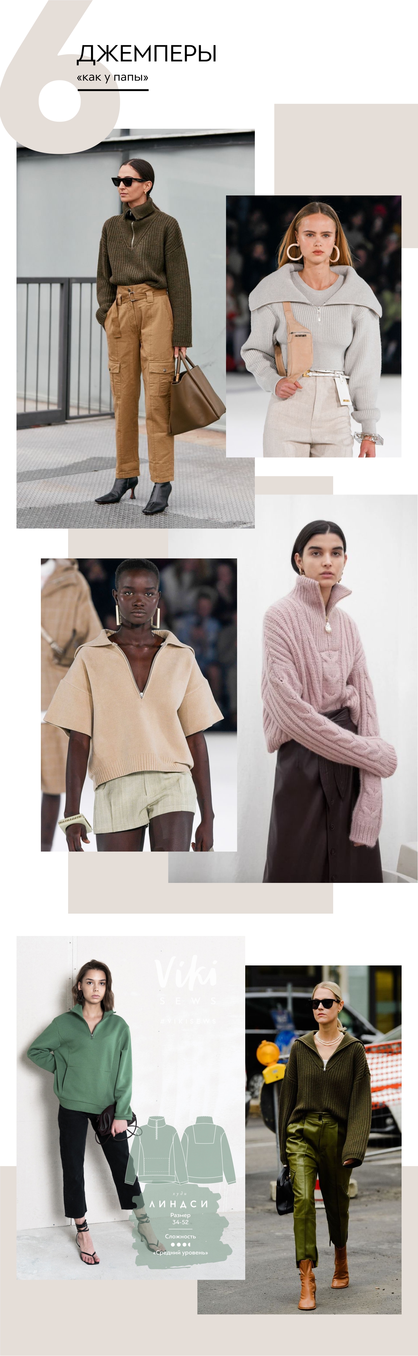Наверное, осенью особенно хочется чувствовать поддержку сильного мужского плеча, поэтому и кутаемся в их одежду. Объемные джемперы с молнией, как носили в нашем детстве папы, — это мегатренд и отличная альтернатива свитеру. Сшейте себе худи Линдси.